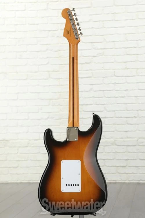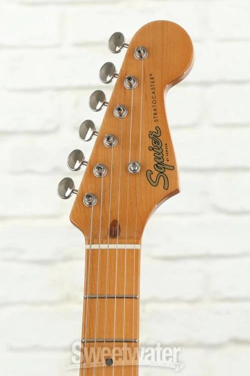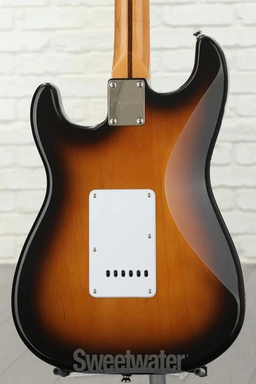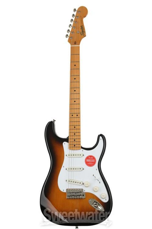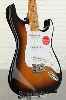Squier Classic Vibe: An Affordable Take on the Classic '50s Strat Celebrate the first decade of the Fender Stratocaster, with the Squier Classic Vibe Stratocaster '50s. This vintage-style solidbody electric guitar offers the sound and style that made the Strat the iconic instrument that it is today. The updated Squier Classic Vibe model features many cool revisions that make it a better value than ever. The Squier Classic Vibe includes a trio of Fender-designed alnico single-coil pickups (including standard 5-way switching) that really capture the traditional Stratocaster sound. At Sweetwater, we're particularly impressed by the Squier Classic Vibe Stratocaster '50s' 1.65" bone nut — an exceptional addition to the classic C-shaped neck and 9.5"-radius fretboard, which provides the kind of sustain and performance you don't typically find on a budget-friendly guitar.Squier Classic Vibe Stratocaster '50s Features: Includes 3 Fender-designed single-coil alnico pickups 5-way blade switch lets you tap into a Sweetwater is an Authorized Squier Dealer Genuine New Item Sweetwater's 2-year warranty and 55 point inspection Squier Classic Vibe '50s Stratocaster - 2-Color Sunburst Solidbody Electric Guitar with Pine Body, Maple Neck, Maple Fingerboard, and 3 Single-coil Pickups - 2-color Sunburst Squier Classic Vibe: An Affordable Take on the Classic '50s Strat Celebrate the first decade of the Fender Stratocaster, with the Squier Classic Vibe Stratocaster '50s. This vintage-style solidbody electric guitar offers the sound and style that made the Strat the iconic instrument that it is today. The updated Squier Classic Vibe model features many cool revisions that make it a better value than ever. The Squier Classic Vibe includes a trio of Fender-designed alnico single-coil pickups (including standard 5-way switching) that really capture the traditional Stratocaster sound. At Sweetwater, we're particularly impressed by the Squier Classic Vibe Stratocaster '50s' 1.65" bone nut — an exceptional addition to the classic C-shaped neck and 9.5"-radius fretboard, which provides the kind of sustain and performance you don't typically find on a budget-friendly guitar. Squier Classic Vibe Stratocaster '50s Features: Includes 3 Fender-designed single-coil alnico pickups 5-way blade switch lets you tap into a full range of tones C-shaped maple neck provides unquestioned Strat performance Standard 25.5"-scale length, 21-fret fingerboard with 9.5" radius 1.65" bone nut delivers upgraded string-to-body resonance 21 Narrow Tall frets are comfortable and easy to play Outfitted with a Vintage-Style Synchronized Trem Specification Detail Number of Strings 6 Left-/Right-handed Right-handed Body Type Solidbody Body Shape '50s Stratocaster Body Material Pine Color 2-color Sunburst Body Finish Gloss Polyurethane Neck Material Maple Neck Shape C Neck Joint Bolt-on Radius 9.5" Fingerboard Material Maple Fingerboard Inlay Black Dots Number of Frets 21, Narrow Tall Scale Length 25.5" Nut Width 1.650" Nut Material Bone Bridge/Tailpiece Vintage-style Synchronized Tremolo Tuners Vintage-style Neck Pickup Fender Designed AlNiCo Single-coil Middle Pickup Fender Designed AlNiCo Single-coil Bridge Pickup Fender Designed AlNiCo Single-coil Controls 1 x master volume, 2 x tone Switching 5-way blade pickup switch Strings Fender, .009-.042 Case/Gig Bag Sold Separately RETURN INFORMATION We want you to be completely happy with your purchase from Sweetwater. If you are not satisfied with your product, you may return it for a refund of the purchase price within 30 days. If your purchase was eligible for Free Shipping, the shipping cost will be deducted from your credit or refund. Returns must be in the complete and original packaging with all accessories and complete documentation (Owner's Manual, warranty card, quick start guides, etc.), show no signs of wear or use, and include a Return Authorization number or be subject to a restocking fee.