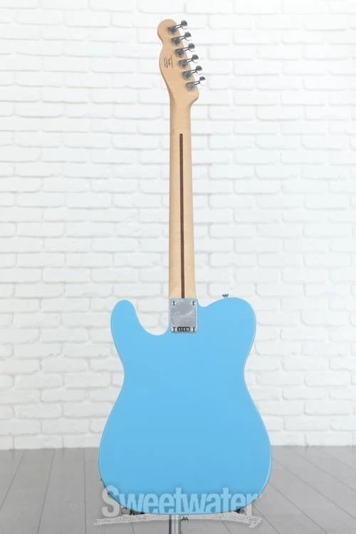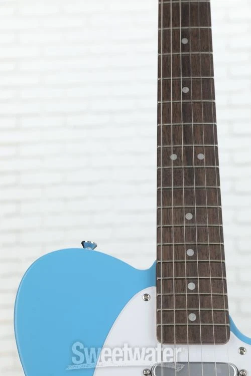 A Superb Introduction to the Electric Guitar The Squier Sonic Telecaster arms beginners with a solid instrument that retains the sound and style of the world’s first solidbody electric guitar. Ceramic Tele Single-Coil pickups at the neck and bridge unleash vintage Tele twang, while a 3-way pickup selector and master tone/volume controls introduce an impressive tonal palette that’s ready to sculpt the mood of any song or lesson. A poplar body keeps things lightweight, while the traditional “C”-shaped neck affords all players a comfortably classic grip for practicing and performing. The die-cast tuners, Telecaster Bridge, and control knobs all come finished in chrome for that legendary Telecaster visual shimmer, too. Plus, an assortment of iconic finishes gives every 6-string pupil a proper Tele aesthetic. If you’re looking for an exciting first electric guitar, there’s no better springboard than the Squier Sonic Telecaster.Designed for comfort Whether you’re shopping for a youngster Sweetwater is an Authorized Squier Dealer Genuine New Item Sweetwater's 2-year warranty Squier Sonic Telecaster Electric Guitar - California Blue Solidbody Electric Guitar with Poplar Body, Maple Neck, Laurel Fingerboard, and 2 Single-coil Pickups - California Blue A Superb Introduction to the Electric Guitar The Squier Sonic Telecaster arms beginners with a solid instrument that retains the sound and style of the world’s first solidbody electric guitar. Ceramic Tele Single-Coil pickups at the neck and bridge unleash vintage Tele twang, while a 3-way pickup selector and master tone/volume controls introduce an impressive tonal palette that’s ready to sculpt the mood of any song or lesson. A poplar body keeps things lightweight, while the traditional “C”-shaped neck affords all players a comfortably classic grip for practicing and performing. The die-cast tuners, Telecaster Bridge, and control knobs all come finished in chrome for that legendary Telecaster visual shimmer, too. Plus, an assortment of iconic finishes gives every 6-string pupil a proper Tele aesthetic. If you’re looking for an exciting first electric guitar, there’s no better springboard than the Squier Sonic Telecaster. Designed for comfort Whether you’re shopping for a youngster or just trying to learn the tricks of the 6-string trade, the Sonic Telecaster offers a feel free of intimidation and discomfort. Starting with its lightweight poplar body, you’ll hardly notice the weight resting on your knee during seated sessions, while the bearing on your neck when standing is designed to be minimal. The maple neck’s “C”-shaped profile provides comfortable chording and the necessary forgiving nature to combat discouragement while learning the ropes. Paired with its Tele-standard 25.5-inch scale length, the Sonic Telecaster is about as perfect a representation of “trainable meets traditional” as you’ll find — even the factory .009-gauge strings are quick to get used to! Patented single-coil sparkle Why do guitar fanatics love the Tele? One big reason is its iconic sharp, sparkly single-coil sound. Equipped with a pair of Ceramic Tele Single-Coil pickups in the original Telecaster configuration, the Sonic Telecaster delivers in spades. From country to rock, alternative, and beyond, nothing beats the sculptability of single-coil tones, making for the perfect benchmark for blossoming beginners. (Sweetwater tip: the Sonic Telecaster can also produce a credible jazz tone — just roll-off the tone knob to taste.) Guitar legends like Jimmy Page, Bruce Springsteen, and Keith Richards have all favored that timeless Tele twang, and needless to say, it’s no mere coincidence! Looking the part Phenomenal feel? Check. Superb sound? Check. Stunning visuals? You bet! The Sonic Telecaster comes dressed in a variety of classic finishes, arming beginners with a legendary-looking instrument. Additional visual charm comes in the form of chrome hardware across the control knobs and plate, sealed die-cast tuning machines, and a 6-saddle Telecaster Bridge. Make no mistake, the Squier Sonic Telecaster has the sonic and visual makings for a spectacular springboard instrument — all for a price that’s virtually unbeatable! Squier Sonic Telecaster Electric Guitar Features: Poplar body offers a lightweight feel for all players, whether sitting down or standing up Maple neck features a classic “C”-shaped profile for comfortable chording Standard 25.5-inch scale length delivers a traditional stretch across the fretboard Factory .009-.042-gauge strings are forgiving on the fingers Neck and bridge Ceramic Tele Single-Coil pickups supply that legendarily bright and sparkly tone Assortment of classic finishes nail the iconic aesthetic of the Tele Chrome-finished hardware, including knobs, die-cast tuners, and 6-saddle Telecaster Bridge Single-cut body offers timeless good looks and easy access to all frets Specification Detail Number of Strings 6 Left-/Right-handed Right-handed Body Type Solidbody Body Shape Telecaster Body Material Poplar Color California Blue Body Finish Gloss Polyester Neck Material Maple Neck Shape C Neck Joint Bolt-on Radius 9.5" Fingerboard Material Laurel Fingerboard Inlay Dots Number of Frets 21 Scale Length 25.5" Nut Width 1.650" Nut Material Synthetic Bone Bridge/Tailpiece 6-saddle Hardtail Tuners Sealed, Die-cast Neck Pickup Squier Ceramic Tele Single-coil Bridge Pickup Squier Ceramic Tele Single-coil Controls 1 x volume, 1 x tone Switching 3-way blade pickup switch Strings NPS, .009-.042 Case/Gig Bag Sold Separately RETURN INFORMATION We want you to be completely happy with your purchase from Sweetwater. If you are not satisfied with your product, you may return it for a refund of the purchase price within 30 days. If your purchase was eligible for Free Shipping, the shipping cost will be deducted from your credit or refund. Returns must be in the complete and original packaging with all accessories and c