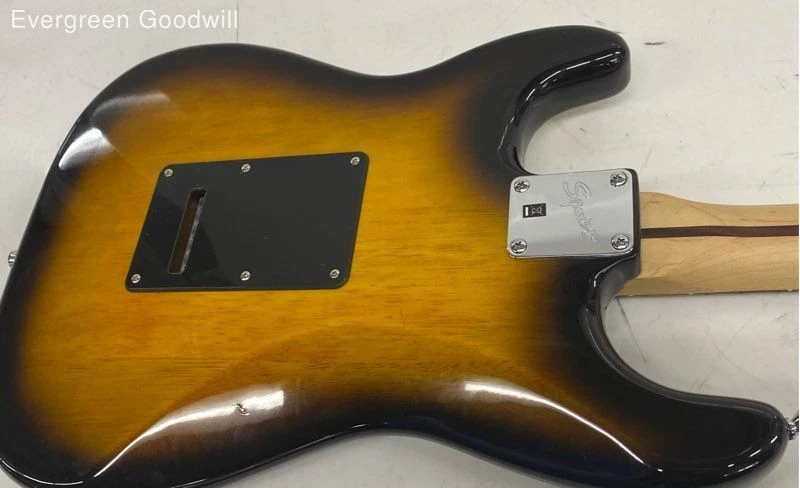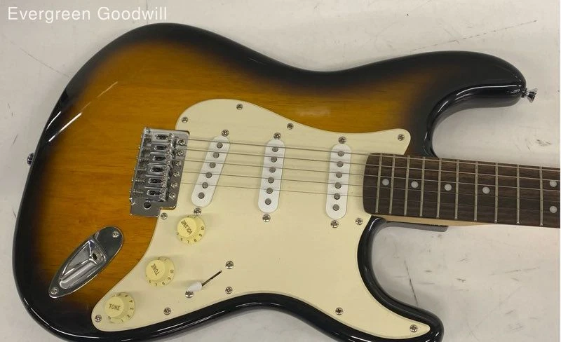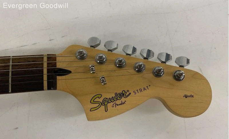squier Electric Guitar Brand : squier Type & Body Style : Electric strat Condition: Fair - shows signs of wear Case: Soft Case - Gig Bag Total Length: 39 in Body Length: 19 in Weight: 8 lbs No cracks or splits. May have chips and other cosmetic damage. See photo for action. Tuners work. Setup and new strings recommended. Electronics untested. May require maintenance. Scale 25.5" Evergreen Goodwill helps people get jobs across Northwest Washington by offering high-quality free job training, education and job placement. We empower individuals to overcome barriers to working by providing comprehensive support and connecting them with life-changing job opportunities, ensuring they are career-ready and can support themselves and their families. ***Disclaimer*** All items were donated to Evergreen Goodwill of Northwest Washington with no history or provenance. The auction is for all items pictured. Items may need servicing and/or benefit from a cleaning upon arrival. Please see photos for additional details and feel free to ask questions. PAYMENTS Please note that your entire order will be canceled by eBay if the oldest item exceeds 7 days without payment. Once an order is canceled, we are unable to re-invoice and the item will be relisted. For a combined shipping invoice, please send us one request within 5 days of winning the first item to avoid cancelation of your entire order. Once a combined invoice has been sent, we are unable to add additional items to the invoice. SHIPPING Local pickup only available to items listed as Local Pickup at this time. Interntaional shipping is not available at this time. We offer combined shipping as long as items will ship safely together. Auctions must end within 5 days of each other to be eligible for combined shipping. Please hold off on payment until all auctions have ended then proceed to checkout. Please do not pay for any items individually if you wish to have them combined - they must be paid at the same time. Items listed for flat-rate shipping are not eligible for combined shipping. PO Box addresses will require USPS shipments as FedEx Ground will not deliver. If FedEx is selected we may need to invoice for additional shipping costs.