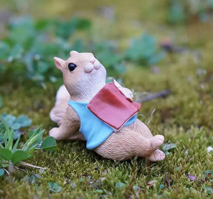 Squirrel Read Book Miniature Fairy Garden Statue Resin Small Figurine Decor Gift