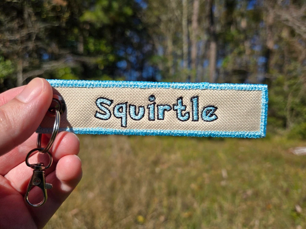This is a Squirtle Jet Tag Keychain that I machine embroidered into waterproof canvas, it's perfect for accessorizing anything from your keyring to a lanyard or a backpack! This tag is made from waterproof canvas with a different design embroidered into the front and back. I also offer the option to have a custom name on the back of the Tag! The dimensions of this tag measure roughly 5x1in. If there is a certain character that you're interested in, please feel free to message me!
