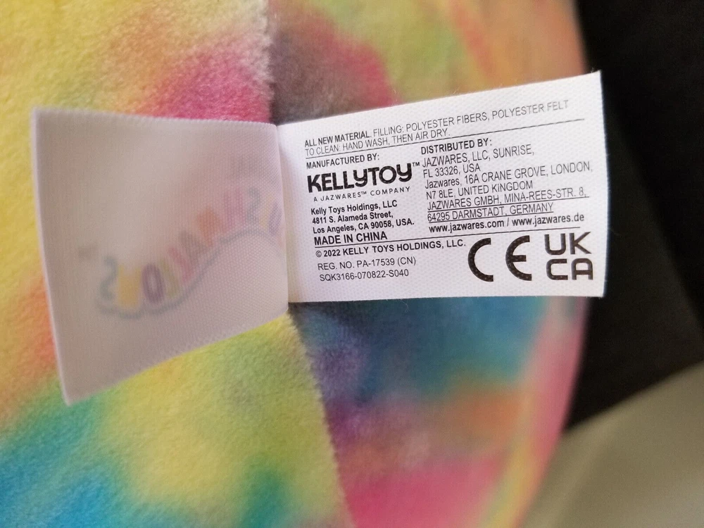This adorable stuffed animal is the perfect addition to any collection! With its colorful rainbow tie-dye design, this medium-sized 16-inch plush Kellytoy is sure to bring a smile to anyone's face. It features a cute platypus animal design that is both soft and cuddly, making it an ideal gift for kids and adults alike. With its vibrant colors and unique design, it is sure to stand out and provide hours of enjoyment. Whether you're looking for a new addition to your collection or a gift for someone special, this stuffed animal is perfect. Very good preowned condition with no tears or stains. Please view photos.