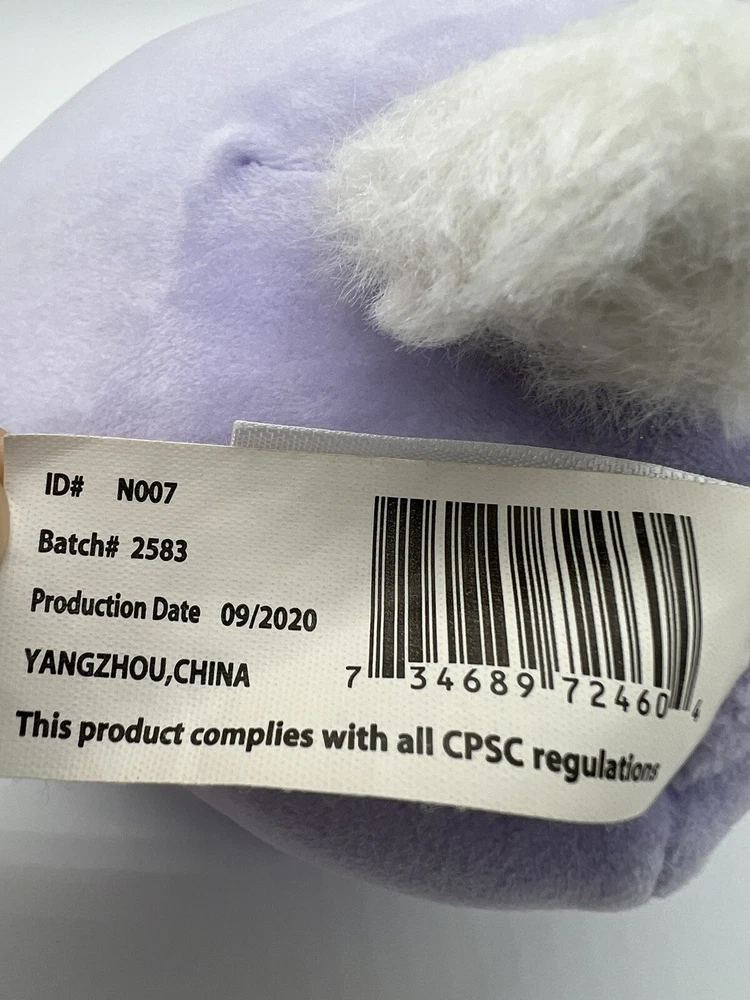 Brand:Squishmallowsgtin13:734689724604Size:5"Year:2021UPC:734689724604Name:BubblesOccasion:Easter or Any Occasion for someone who loves bunniColor:PurpleRecommended Age Range:0+Type:BunnyCharacter Family:SquishmallowsFeatures:Retired, WashableAnimal:BunnyModified Item:No