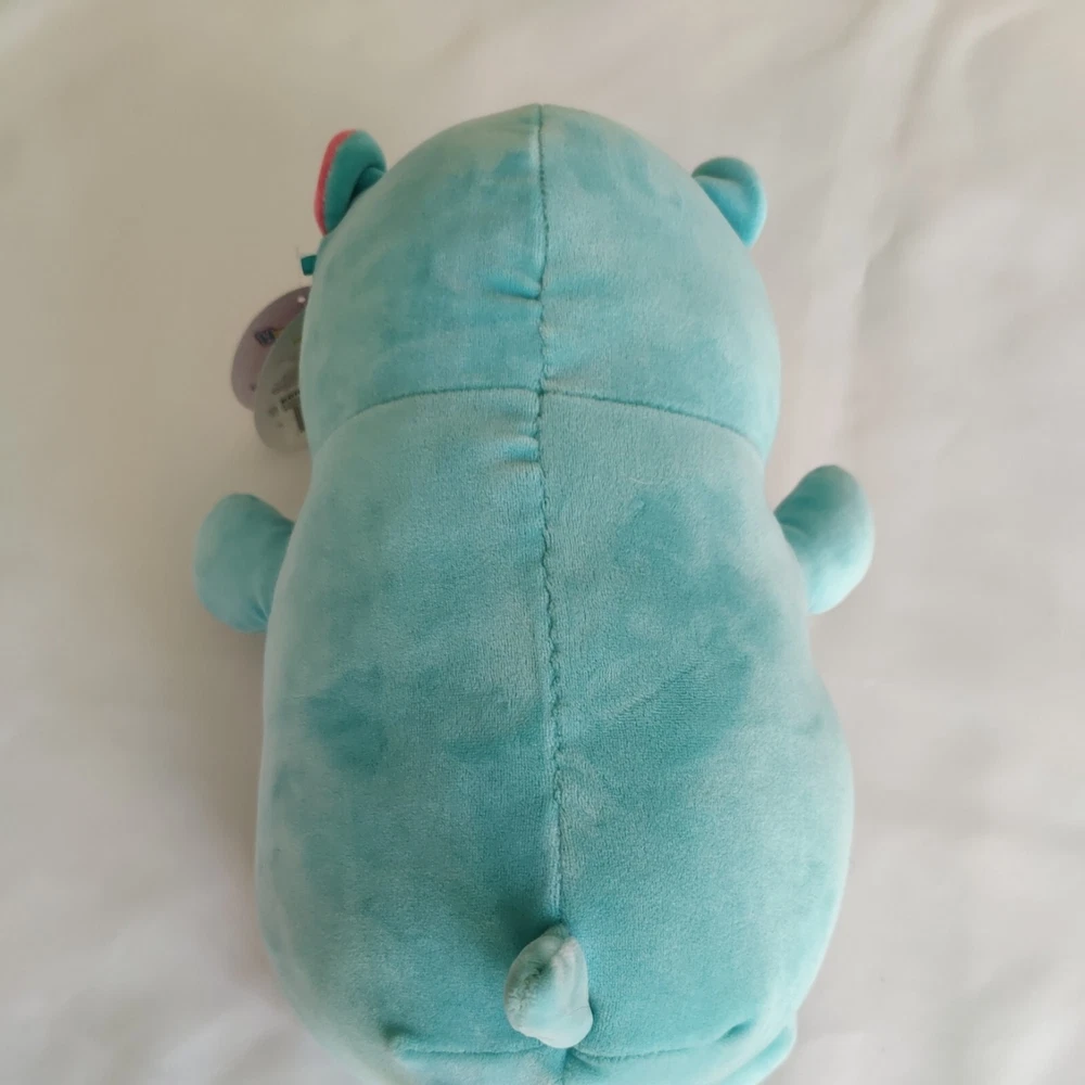 This adorable Squishmallow HugMees plush toy is perfect for Easter! Meet Hobart, the lovable Easter Hamster, and give him a big hug. He's made of soft, plush material and is perfect for snuggling with. Plus, he's washable, making him easy to clean and keep clean. Hobart is 12 inches tall and comes in a teal color. He's recommended for children ages 3 and up, and is part of the Kellytoy character family. Made in China, this toy is perfect for Easter and any other occasion. Bring home Hobart today and give him a big hug!