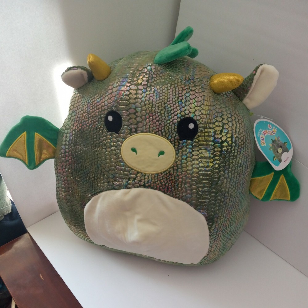 Squishmallow Marty 16"-18" Dragon Original Walgreens Exclusive 2021 NWT. This one is unique with his wings and dragon spikes down its back! His scales also turn different colors depending on the angle and lighting! Very cool, very soft squishy stuffed animal/pillow!