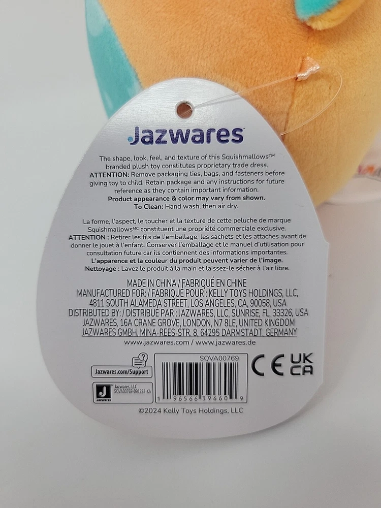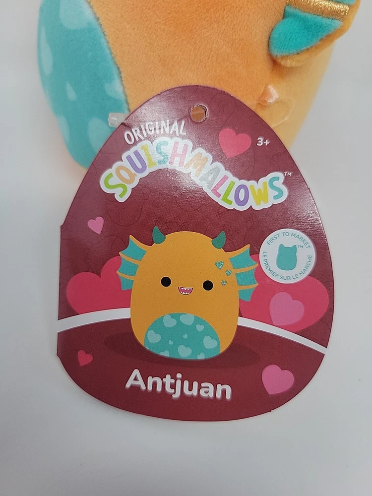 Squishmallow Plush Antjuan the Sea Monster 5 inch Hearts Valentines Day Jazwares The product is a Squishmallow plush named Antjuan the Sea Monster, measuring 5 inches. It features a Valentine's Day theme with heart decorations, made by Jazwares. The design is multicolored and part of the Squishmallow character family, perfect for collectors or as a gift for Valentine's Day in 2023.