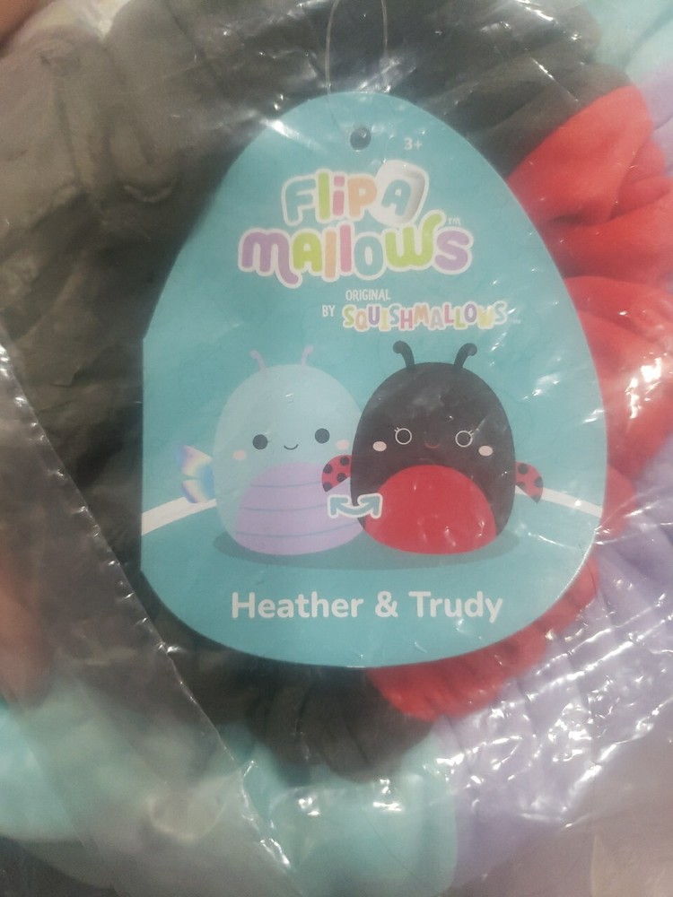 This Squishmallows Flip A Mallows plush toy features a colorful butterfly and ladybug design, perfect for kids aged 3 and up. Made in China, this small-sized (6-14 inches) toy is part of the popular Squishmallows brand. With its soft and squishy texture, it's sure to be a hit with any child who loves stuffed animals.