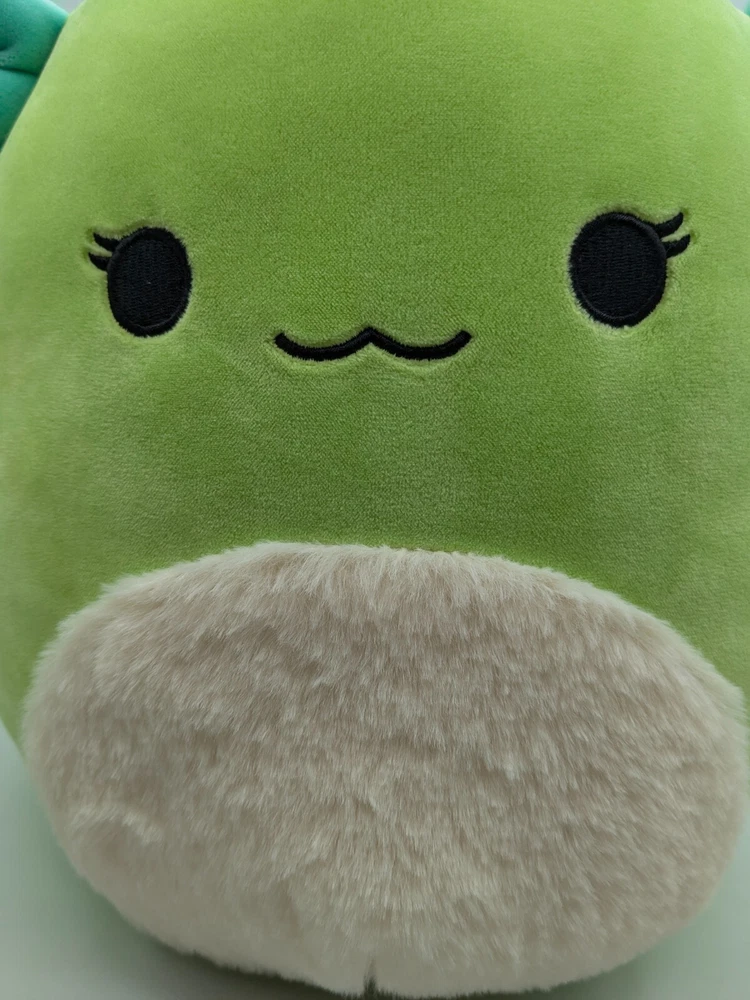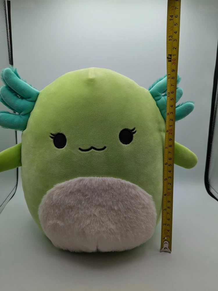 Meet Mipsy, the 12-inch Squishmallows green axolotl with a soft, fuzzy white belly! Her apple-green body is accented with mint gills, light teal frills, and stubby arms, while her round black eyes with eyelashes and charming cat-like smile bring her personality to life. A perfect cuddly companion or a delightful addition to your Squishmallows collection. Pre-owned in good condition, small mark as shown in images. We ship within one business day! This item comes from a smoke-free and dog-free home. Our items are carefully packed to guarantee their safe arrival to you. #squishmallow #squishmallows #mipsy #axoloti #plush #plushie #plushies #cbtreasures