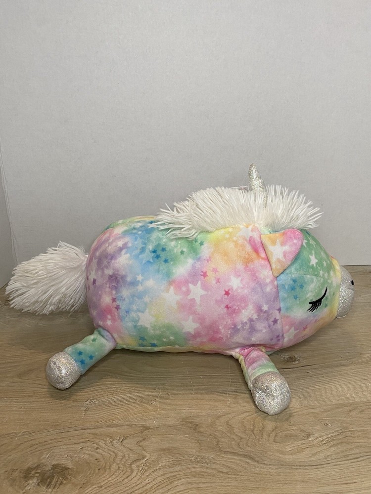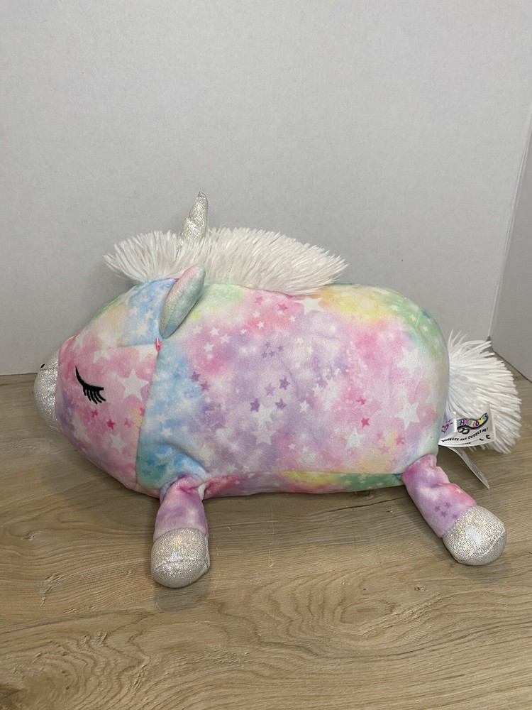 Squishmallows Justice 12" Sleeping Piggy Unicorn Starry Tie Dye Plush. Justice Exclusive Squad Discontinued Series. Was cotton candy scented but very light now. In good condition.