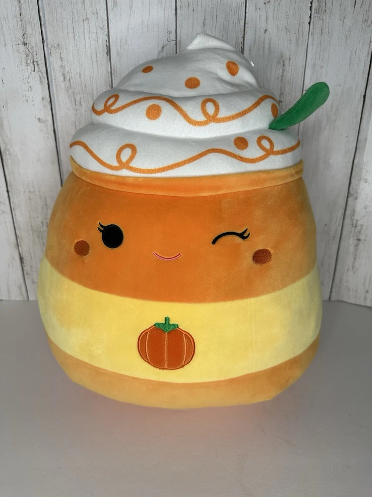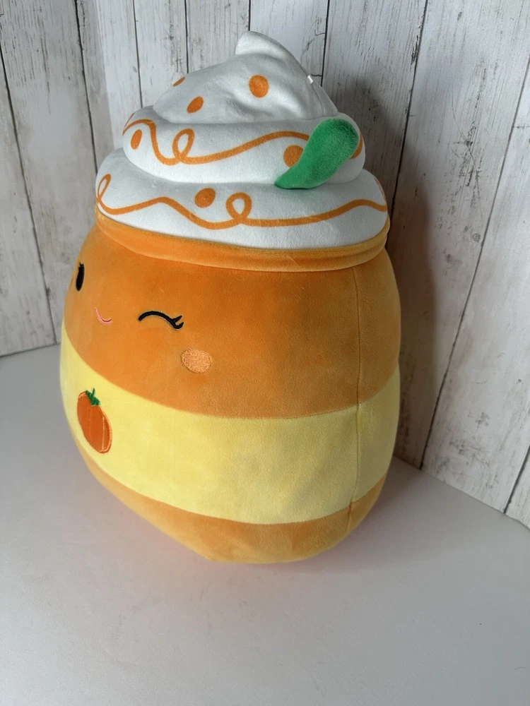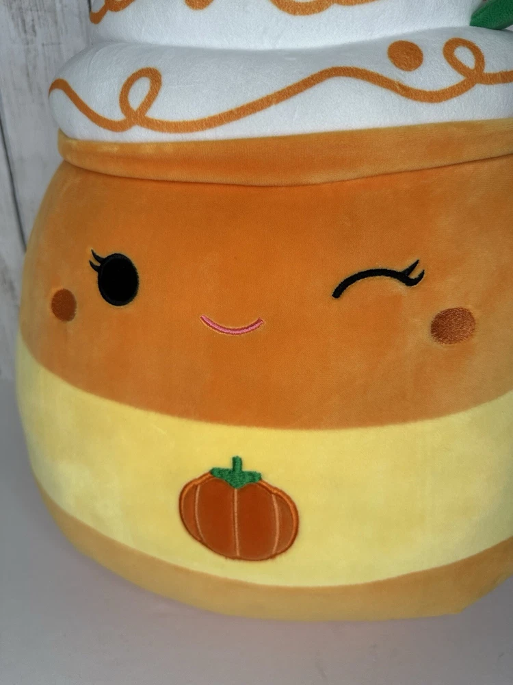 Squishmallows 14” Delindy Pumpkin Spice Latte w/Green Straw Plush Kellytoy