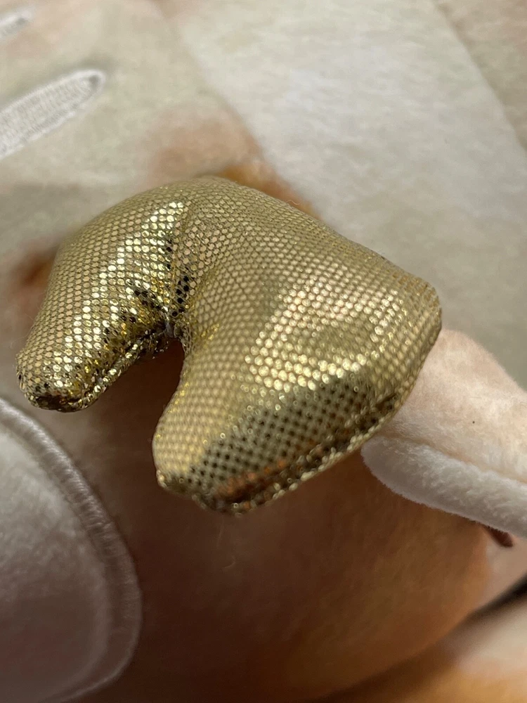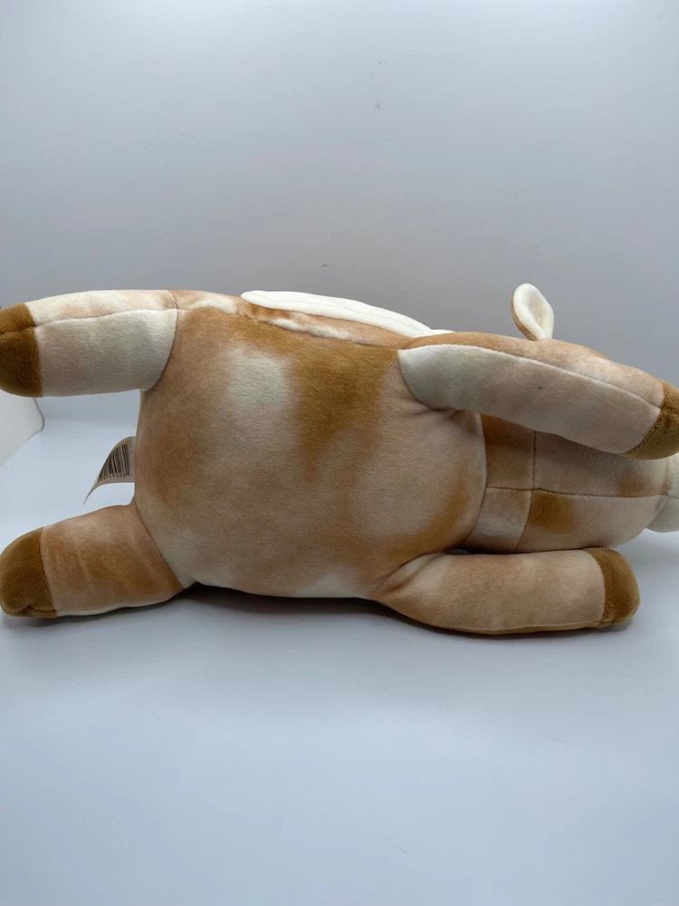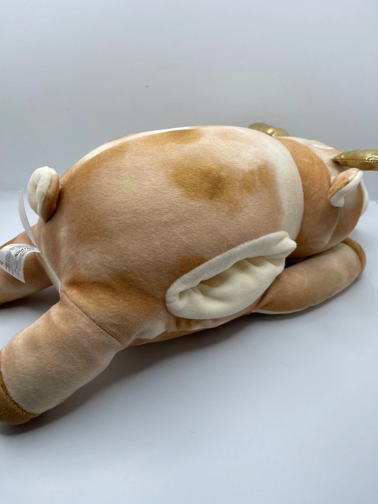 The product is a Squishmallows Hugmallow plush toy featuring Dawn the Deer, with a unique gold sparkles design. This medium-sized (14 inches) stuffed animal is part of the popular Squishmallows brand, known for their soft and huggable toys. Perfect for any occasion, this cute and cuddly deer toy is sure to bring joy to anyone who receives it.