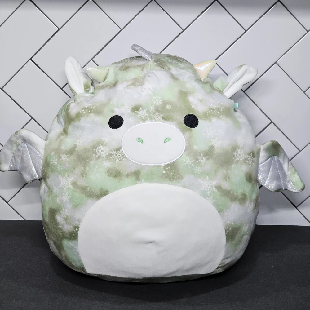 You Are Bidding On: 1 Plush Squishmallow 16" Will The Dragon Items Received: Squishmallow Will The Dragon Green Tie-Dye 16" Plush About Items: Squishdate 12.01.2020 Bio: Will's favorite thing to do is play in the snow; building snow forts, decorating snow dragons, and especially snowball fights. He builds a huge snow castle to play in, it even has a moat! Appearance: Will is a dragon with a tie-dye pattern that is green, brown and white. He has a cream snout, belly and inner ears. His wings, ears and small parts of his body have silver glitter on them. His spines are silver and he has two black eyes. Orders carefully packaged Please message if you have questions!