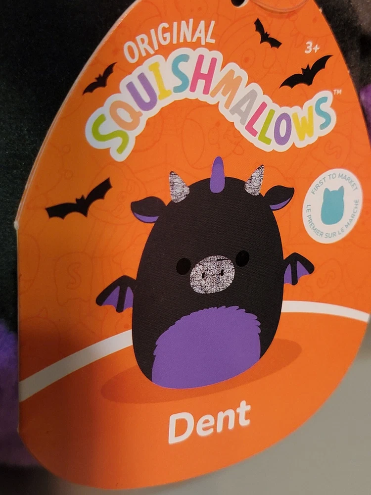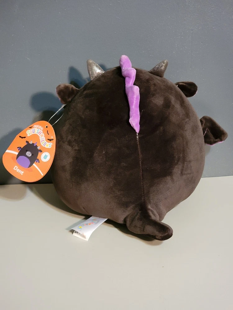 Introducing the Squishmallows 8" Dent Black Purple Dragon Purple Halloween Squad Plush, a must-have for all plush toy collectors and fans. This adorable and cuddly plush toy is made by Kellytoy and features a cute dragon design in black and purple, perfect for Halloween or any occasion. Measuring at 8 inches in size, this plush toy is small and easy to carry around. It is also sensory, washable, and collectible, making it a great addition to any collection. Recommended for ages 3 and up, this plush toy is perfect for kids and adults alike. Get your hands on this limited edition Squishmallow and add it to your collection today!