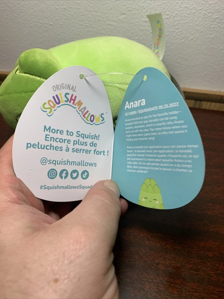 Squishmallows Anara the Asparagus 5" plush stuffed toy, new w/tags,2023 Kellytoy Approximate dimensions: 5" tall, 5" wide, and 4" thick