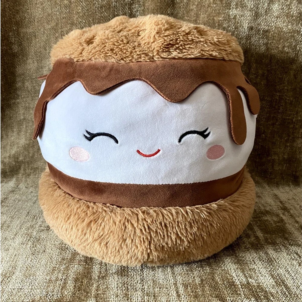 **Squishmallows Carmelita the S'more Plush 12":** Snuggle up with Carmelita, your soft and sweet 12-inch S'more-themed Squishmallow. - **Delightfully Soft:** Known for their cloud-like texture, this plush offers ultimate comfort for both play and relaxation. - **Charming S’more Design:** Designed as an adorable s'more, it’s perfect for both plush collectors and s'more lovers. - **Ideal Gift:** The perfect cuddly companion for all ages, making it a great gift for special occasions. - **Free Shipping:** Get this lovable plush delivered to your doorstep with no additional shipping cost, enhancing your shopping experience. Condition: Pre-owned, clean, no discernible flaws, sold as is.