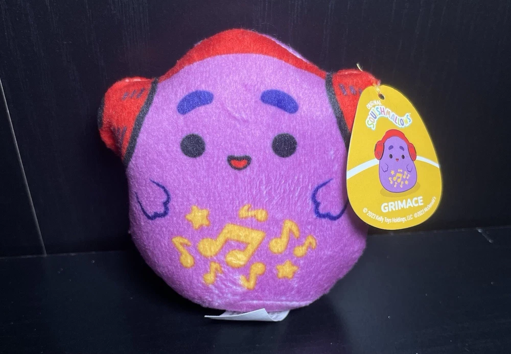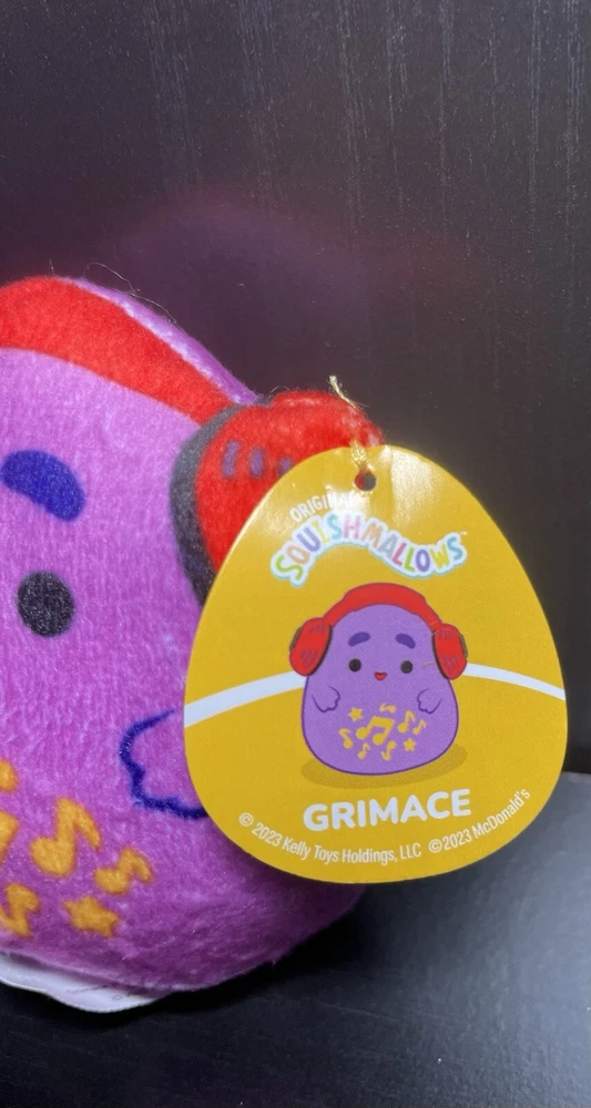 The product is a 3" Squishmallows Grimace plush toy from McDonald's Happy Meal. It features the character Grimace from the McDonald's restaurant chain and is designed for children aged 3 years and up. This soft toy is part of the McDonald's character family and was made in China.