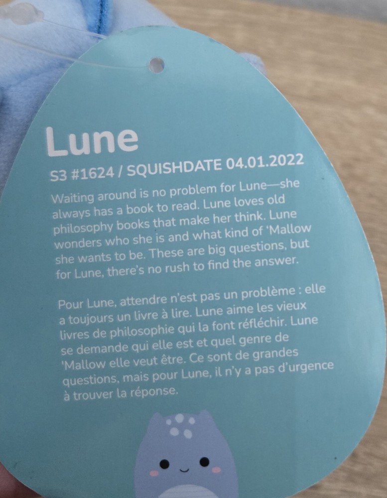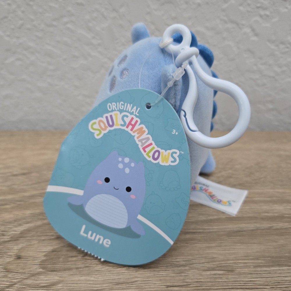 *Free shipping with USPS Ground Advantage. Ships ASAP. Packaged with care. Smoke-free home.* This is a Squishmallows bag clip plush featuring LUNE the Loch Ness Monster in a mini size of 3 inches. The plush is blue and comes with tags attached. It is a collectible item suitable for all occasions, with a hand-wash care recommendation. Made in China, it belongs to the Squishmallows character family and is designed for ages 3 and up.