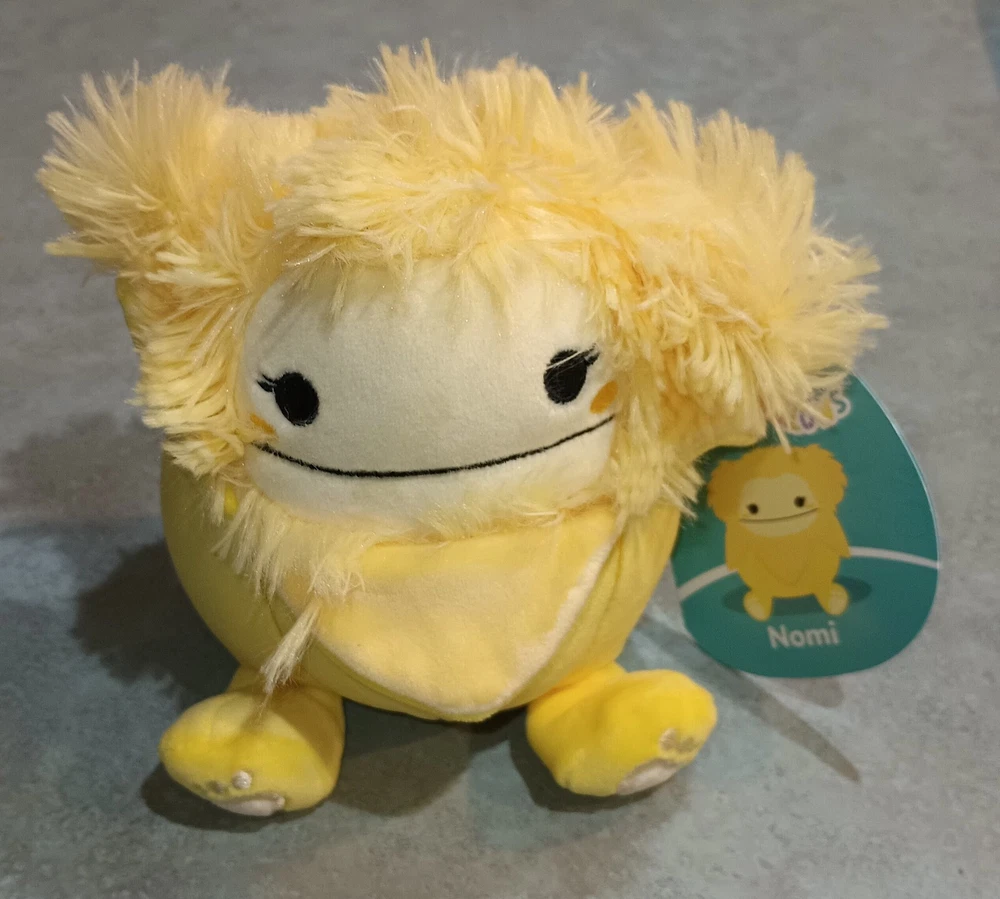 New with tags rare Nomi the banana bigfoot squishmallows. Found from a mystery squishmallows pack.