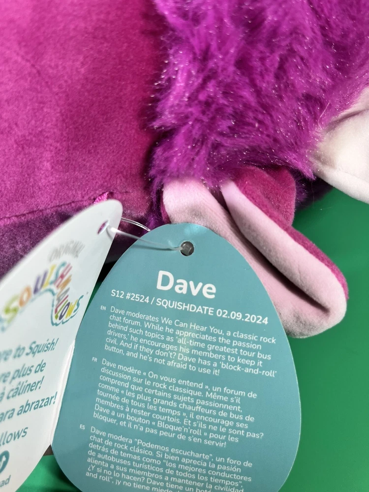 Manufacturer Minimum Age (MONTHS):36.0Type:Does not applyInner Material:PolyesterFinish Types:MatteRequired Assembly:NoOuter Material:PolyesterToy Figure Type:Stuffed ToyUPC:7445027176155Model Name:Style 2Animal Theme:BisonCollection Name:AnimalsNumber of Pieces:1Subject Character:Dave Plum BisonSize:Small (6-14 in)Model:SQCR06880gtin13:7445027176155Animal:BisonItem Dimensions L x W x H:10"L x 9"W x 12"HTheme:AnimalYear:2024Color:PurpleBrand Name:SquishmallowsAre Batteries Required:NoBrand:SquishmallowsMaterial Type:Polyester