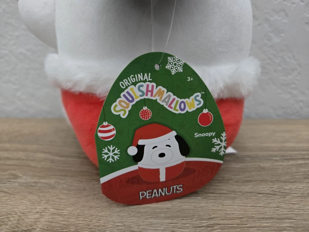 *Free shipping with USPS Ground Advantage. Ships ASAP. Packaged with care. Smoke-free home.* This is a Squishmallows Peanuts SNOOPY 8" Christmas plush toy. It features a holiday theme, is brand new with tags, and is hand-washable. The plush is small in size and multicolored, depicting a dog character from the Peanuts Gang. It is recommended for ages 3 and up and is made in China.