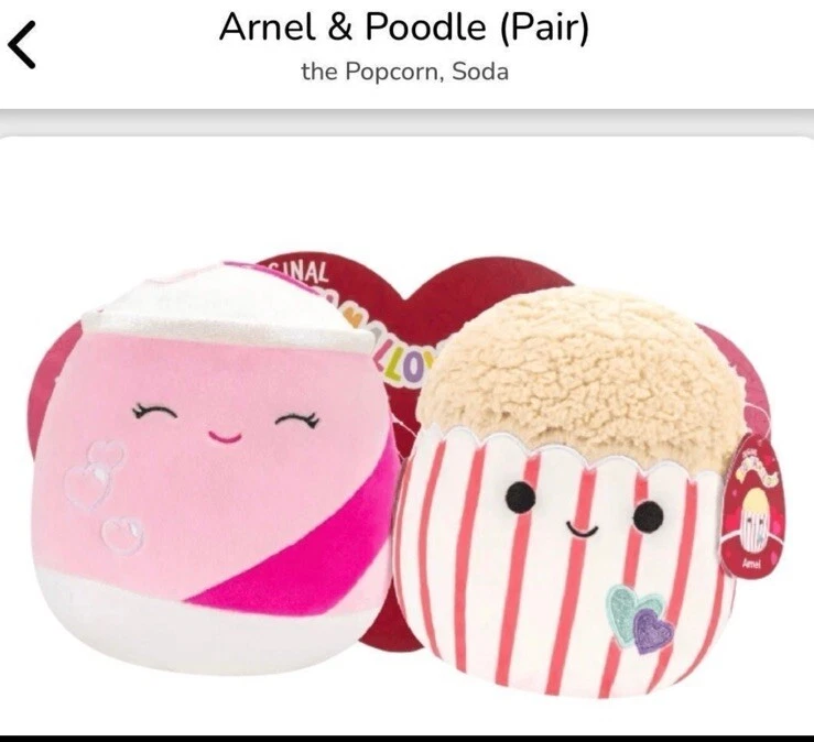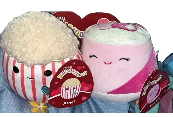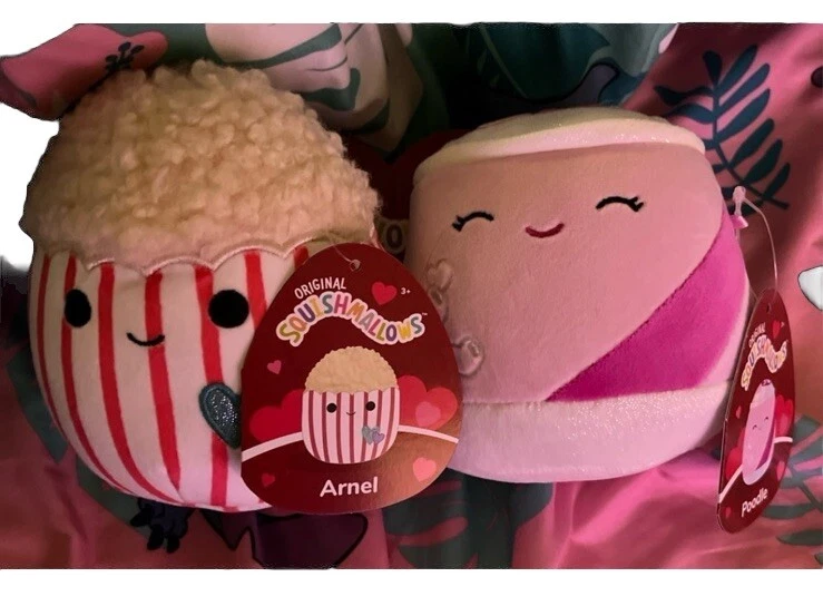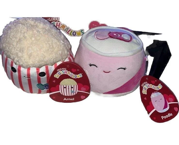 This adorable 2-plush set features a cute poodle and amel, perfect for Valentine's Day or any occasion. Made by Kellytoy, these Squishmallow plush toys are under 6 inches and come in a fun multicolor design. The set is a great addition to any stuffed animal collection and is sure to bring a smile to anyone's face. The Squishmallows brand is known for its high-quality and lovable plush toys, and this set is no exception. Whether you're looking for a gift for a loved one or just want to add to your own collection, this set is a must-have.