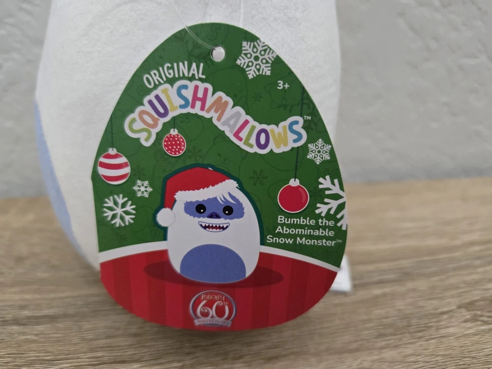 *Free shipping with USPS Ground Advantage. Ships ASAP. Packaged with care. Smoke-free home.* Squishmallows Rudolph The Red-Nosed Reindeer BUMBLE 6.5" Plush celebrates the 60th Anniversary with a soft, white plush toy. This small-sized (6-14 in) Squishmallow features the beloved character Bumble from Rudolph The Red-Nosed Reindeer. It is hand-washable and suitable for ages 3 and up, making it a perfect Christmas gift for fans of this classic holiday character.