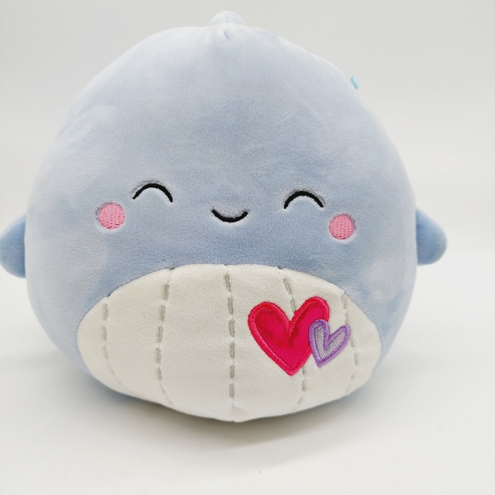 Squishmallows Samir Blue White Whale Valentines Day Plush 2022 8" Hearts