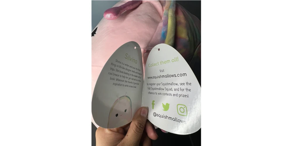 Meet Silvina the Snail, the perfect addition to your Squishmallows collection! This adorable 16" stuffed plush is made by the trusted brand Squishmallows and is sure to bring joy to both kids and adults alike. With its soft and squishy texture, it's perfect for snuggling or displaying on a shelf. This toy falls under the category of Other Stuffed Animals and Stuffed Animals, and is a great choice for anyone looking for a cute and cuddly addition to their collection. Whether you're a fan of snails or just love collecting Squishmallows, Silvina the Snail is a must-have!