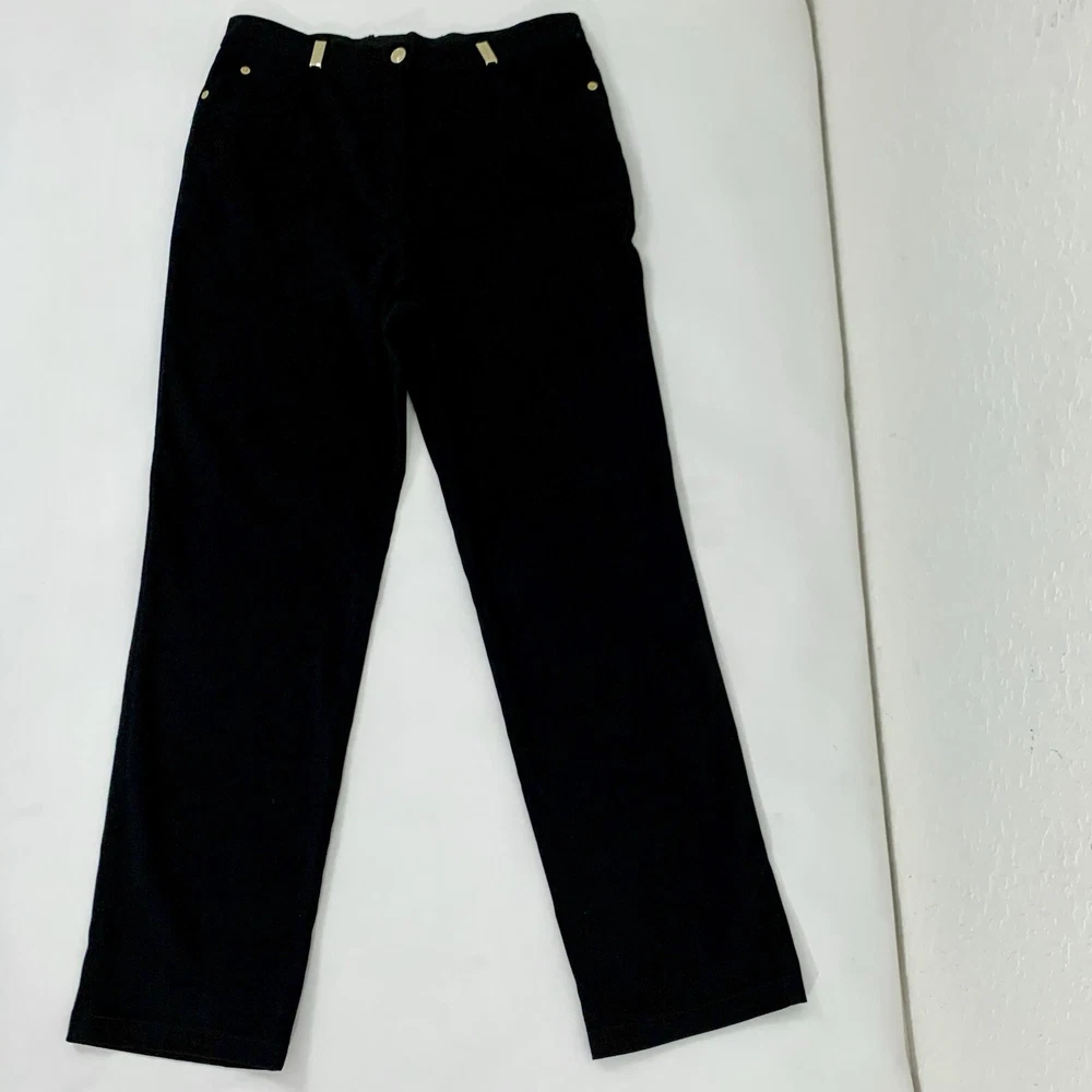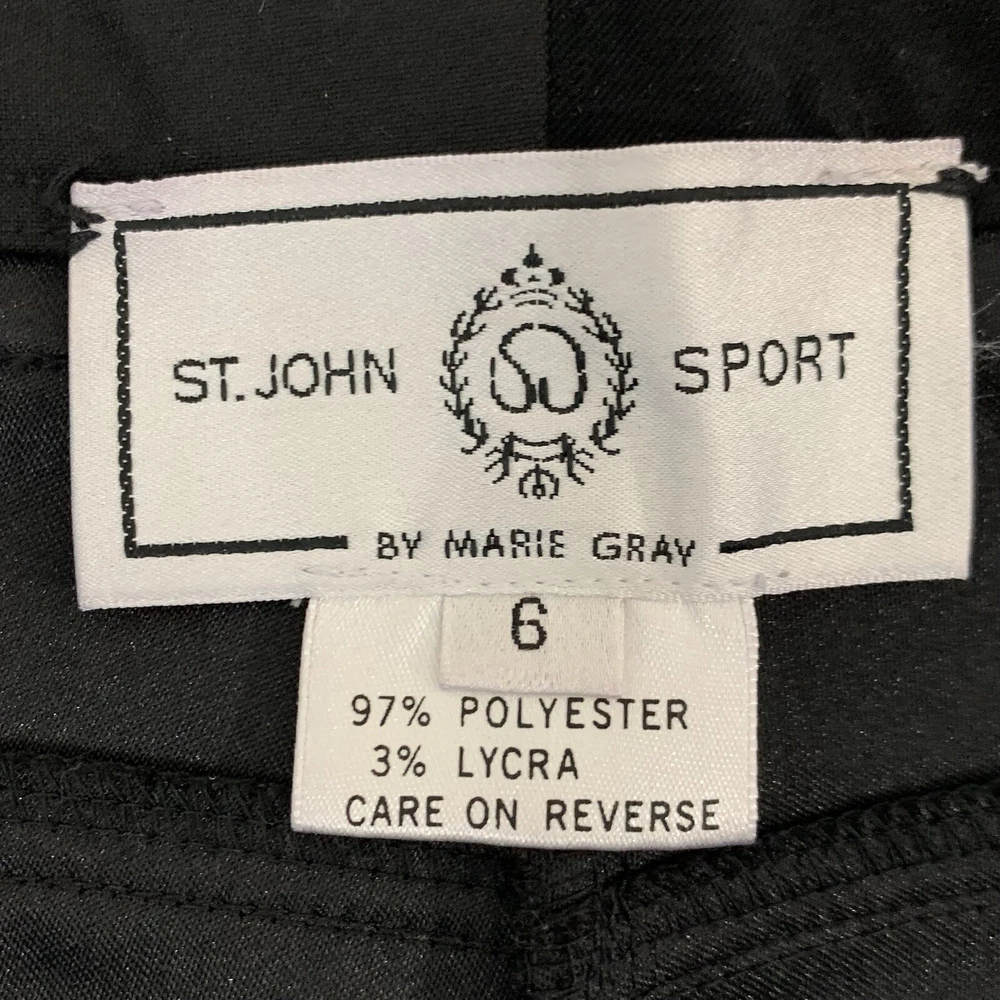 - Vintage St John Sport Pants by Marie Gray Women Size 6 Black with Gold Accents Straight Leg Zip Button Fly Pockets High Rise 11" Inseam 30.25" Soft Fabric, Polyester Spandex blend Dry Clean Made in Korea See photos to c ompare your personal measurements to the garment's measurements to ensure proper fit. Great preowned condition. Wear on gold belt loop detail-see photos FAST Shipping! 1-3 business days. Offers welcome! Tags: everyday fashion stylish trendy classic spring summer fall winter seasons apparel comfy comfortable easy to wear classy casual favorite y2k 80s 90s versatile essential minimalist career dress slacks trouser designer quiet luxury 030929 career professional work clothes serious environment business casual interview teacher intern apparel employee worker workwear fashion stylist workplace dress code office attire polished mature sophisticated corporate careerwear businesscore put together light dark academia nerdy gossip girl waldorf oxford soft boy literary librarian professor refined collegiate understated subtle quiet luxury luxe luxurious designer soaked in inspired organic unique private elegant posh polished country club old money exclusive dupe vintage authentic oppulent beautiful belle champagne taste refined supreme sophisticated crepe chiffon dainty french tuck defining timeless date night glam glamorous eye-catching elevated elite fabulous flattering flair fantastic lace silk cashmere wool gold silver sparkle luster gracious hostess interesting intimate intelligent lovely magical modern contemporary muted popular preppy quaint quintessential romantic sensational stunning understated vivacious vibrant wonderful