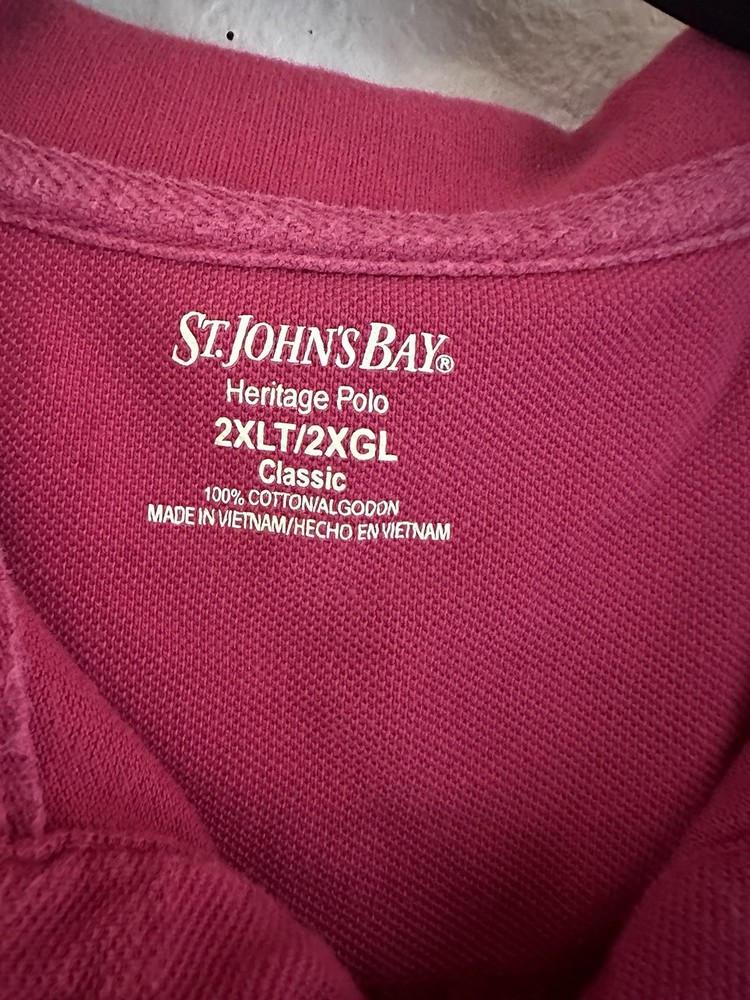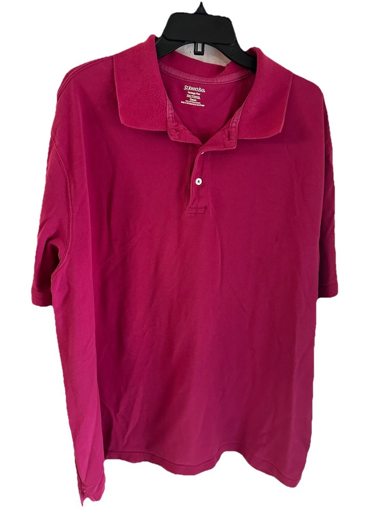 St Johns Bay Mens Polo Shirt 2XL Pink Heritage Pique Short Sleeve Collared Good Condition Minimal Signs of wear