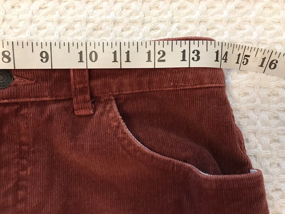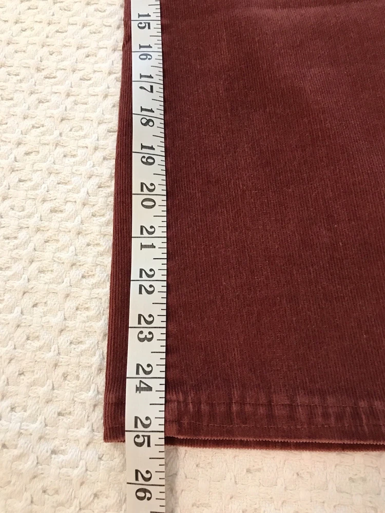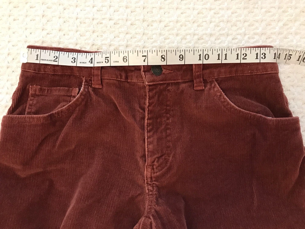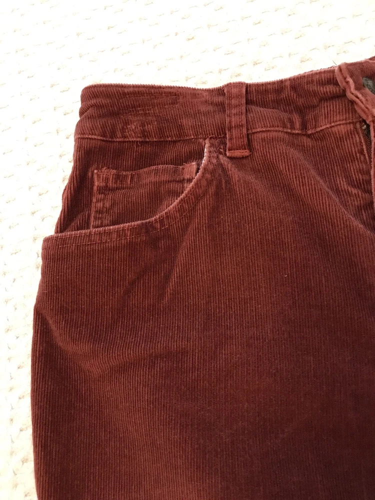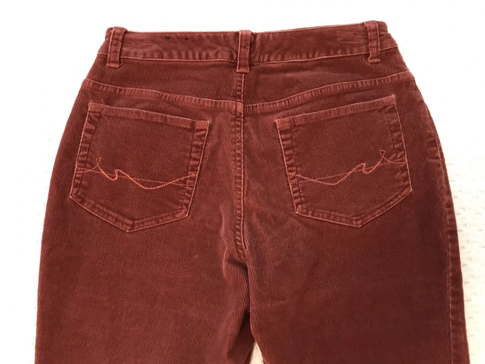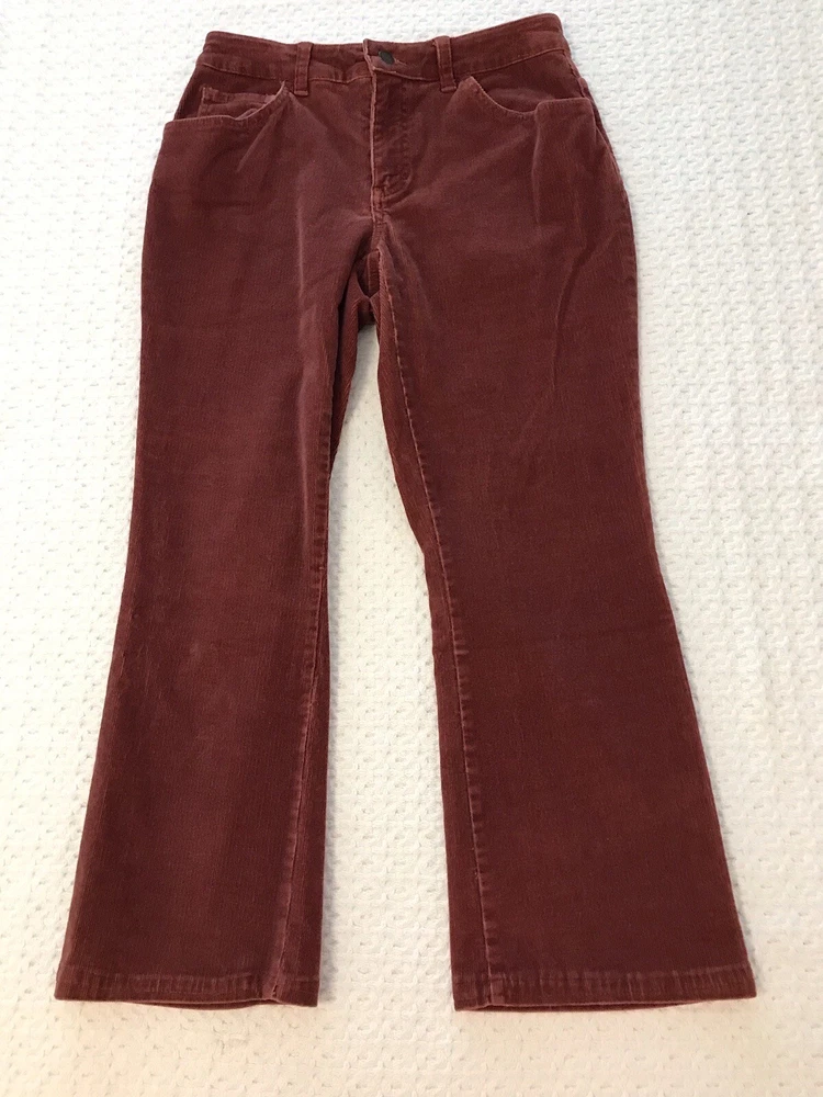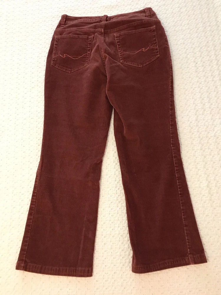 Add a touch of retro-inspired style to your wardrobe with these St. John's Bay Petite corduroy pants. The burnt orange rust color and nature-inspired theme make them perfect for any fall or winter occasion, whether it's a casual day out or a party. With a comfortable and stretchy spandex and cotton blend, these pants have a regular fit and feature a flat front and bootcut leg style. Waist is 28 inches. Inseam is 25 inches. Rise is 9 inches. The easy care and pockets make them practical for everyday wear, while the festival and grunge theme add a trendy edge. The pants come in size 6P and have a zip and button closure. Ideal for travel and workwear, these ankle-length pants are a versatile addition to any wardrobe. In a smoke free home. No holes, tears or stains.