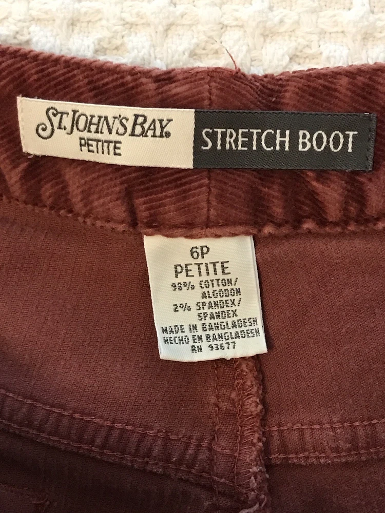 St Johns Bay Petite Corduroy Jean Style Pants Women 6P Stretch Bootcut Rust Clr