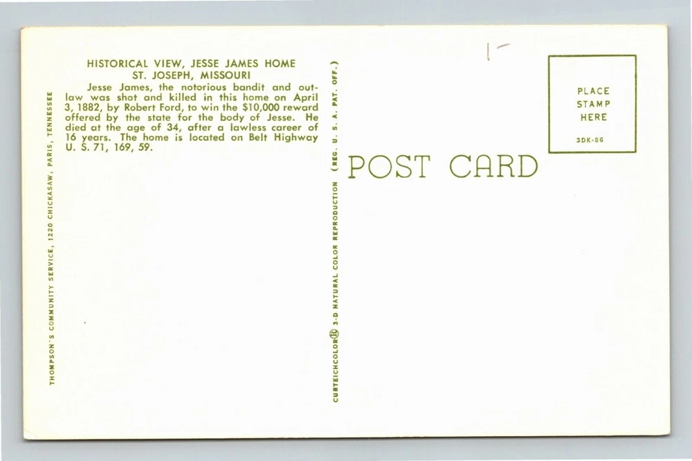 St. Joseph, MO-Missouri, Historical View, Home Jesse James, Vintage Postcard