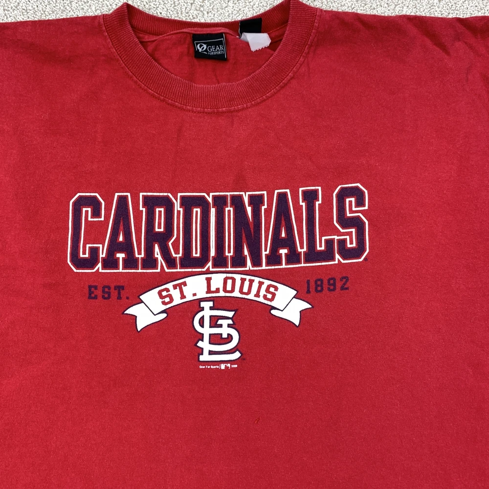 Handmade: No Brand: Gear for Sports Sleeve Length: Short Sleeve Store category: T-shirts Type: T-Shirt Department: Men Season: Fall,Winter,Spring,Summer Neckline: crewneck Personalize: No Vintage: No Descriptive Keywords: St. Louis Cardinals, Sports, Graphic Tee, Casual Wear Material: Not listed, commonly Cotton Size Type: Regular Gender: Men's Size: XL Fit: regular Color: Red Seller Notes: “Good pre owned condition, Measurements are included in the photos to ensure proper fit”