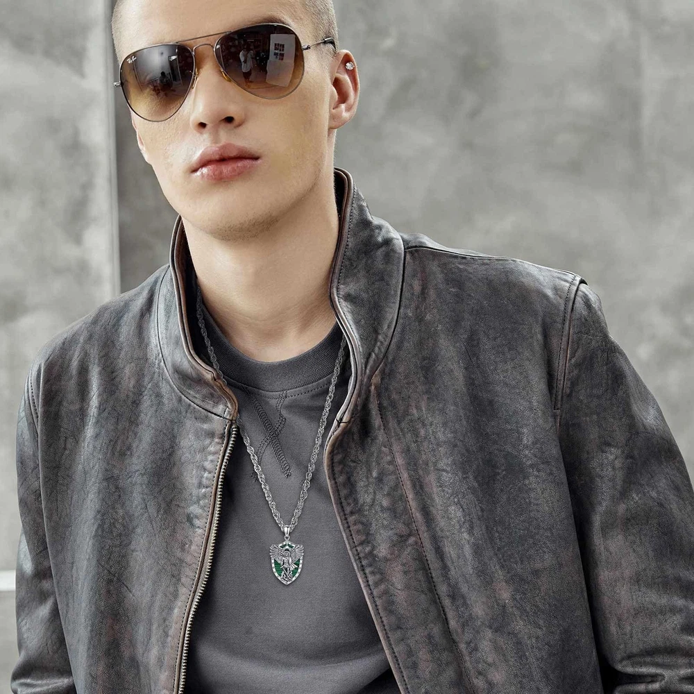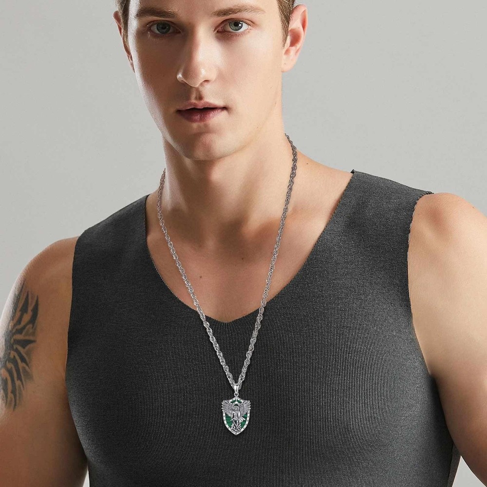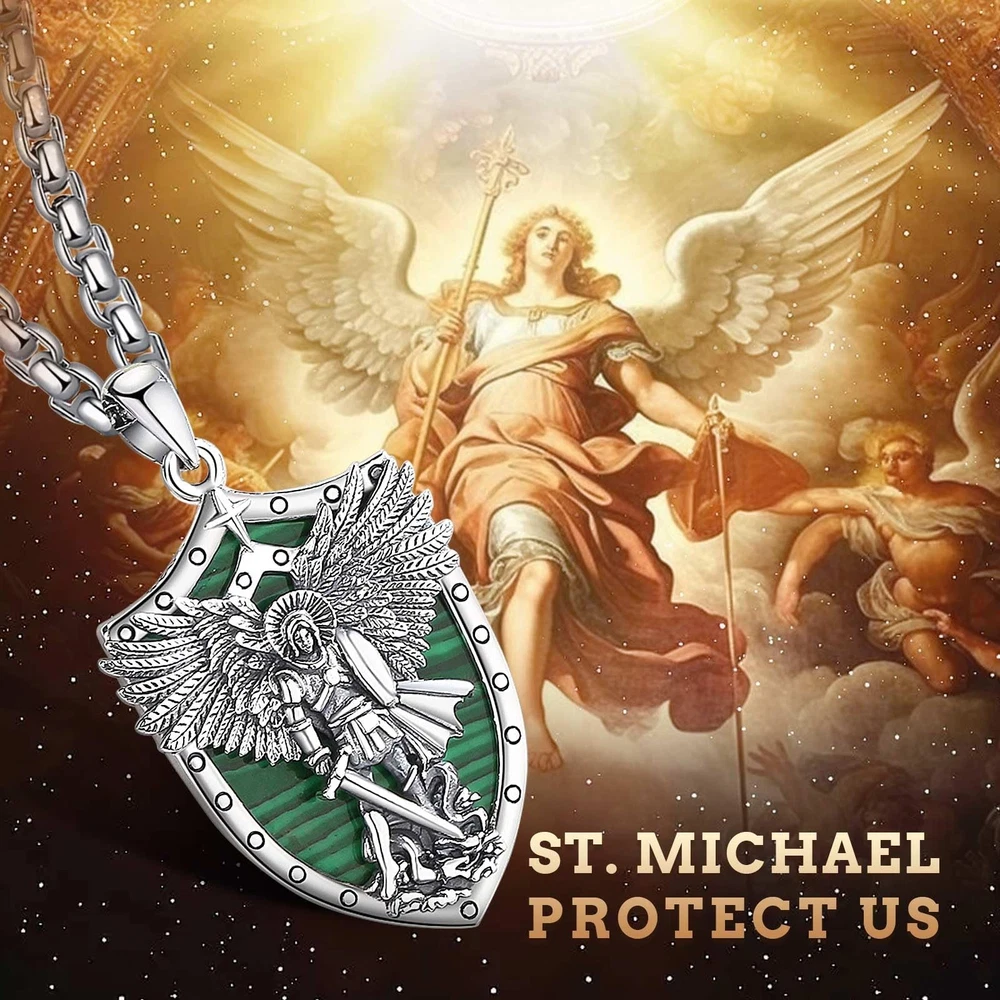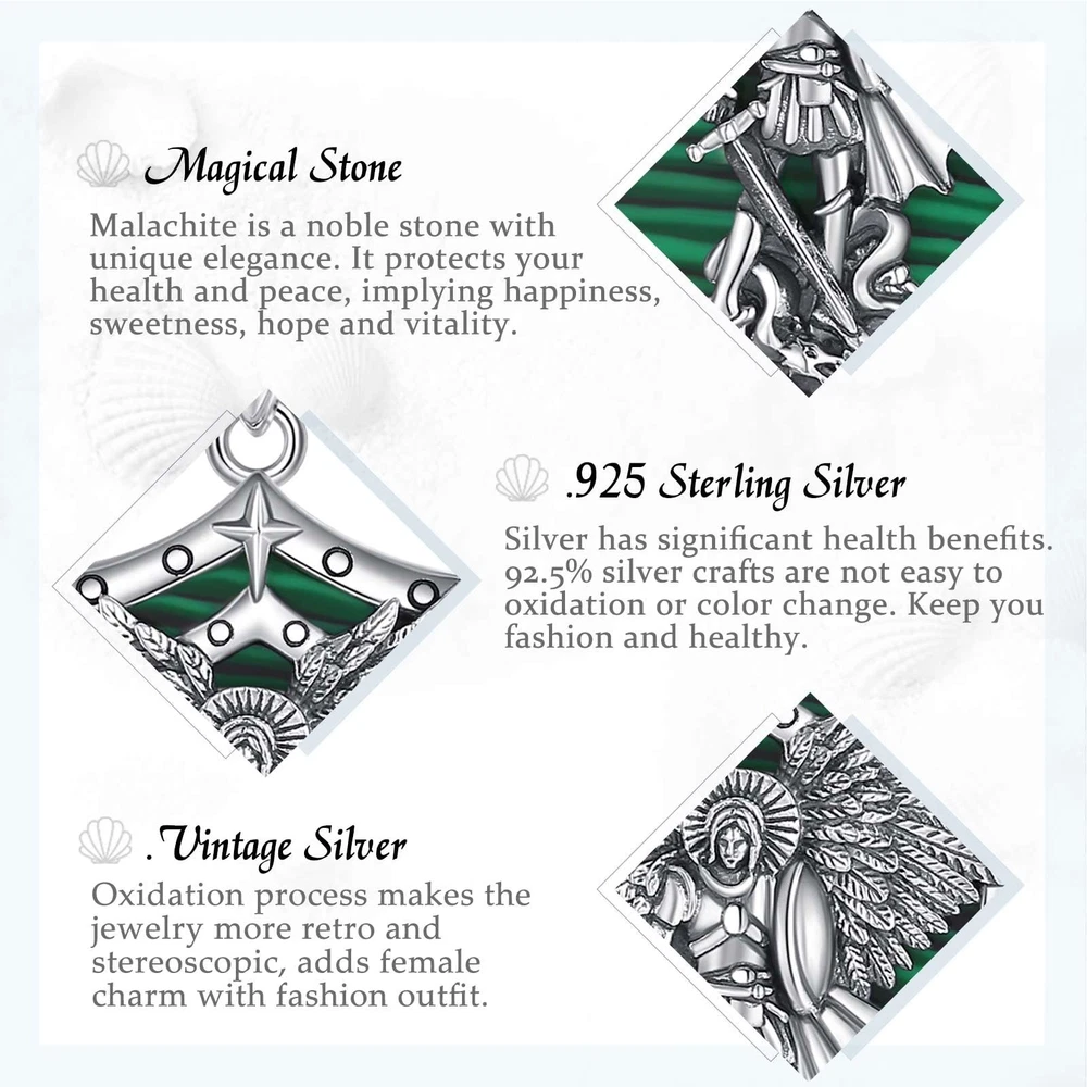 YOU WILL RECEIVE 1 X sterling silver pendant 1 X 24 inches chain 1 X silver cleaning cloth 1 X jewelry gift box --------- GET TO KNOW US BETTER --------- WHY CHOOSE JEWELRY COLLECTION? Our company is a collection of jewelry design, manufacturing, retail, wholesale business as one of the large modern enterprises. brand is committed to providing consumers with high-quality and fashionable jewelry and has been working hard for this. Our products are made of environmentally friendly and safe materials, which are colour-resistant, nickel, lead, cadmium free and contain no allergenic elements, suitable for long-term wear. WHAT CERTIFICATIONS DO WE HAVE? In addition to the Patents and Copyrights related to jewelry design, the ISO Certification is the assurance that we have robust, clearly defined procedures in place in all our business areas such as R&D, production, supply chain management, risk-management, handling of documents and data and strong business continuity processes. Wish our jewelries will be a gorgeous and elegant collection to you and your beloved him or her! Archangels Michael: St. Michael is often depicted as a warrior angel, clad in armor, symbolizing his role as a defender and protector against evil forces. He is considered the patron saint of warriors, police officers, and those in need of protection. Saint Michael holds a significant place in various religious traditions, representing strength, courage, and divine protection against evil. 925 STERLING SILVER: The archangel michael pendant is made of 925 sterling silver, nickel free and lead free, finest polish finished with excellent shining. The pendant size is 0.85"*1.5", weight:5.78 g. Chain Length: 22" with 2" extender. Material: Malachite is a green-colored mineral that is highly populared for its distinctive and vibrant appearance. Malachite is believed to possess properties that promote spiritual growth, transformation, and positive energy. It is considered a stone of healing, protection, and balance. Malachite is also often used to promote emotional well-being, amplify positive energies, and aid in spiritual development. IDEAL GIFT CHOICE: The packaging includes a soft polishing cloth, to ensure the sterling silver jewelry long-lasting shine. An Ideal gift for friends, loved one,family or maybe just as a treat to yourself! Ideal jewelry accessories for Birthday, Christmas, Valentine's Day, Wedding, Engagement, Anniversaries, Graduation. HOW TO MAINTAIN: Silver is so precious that have to be cleaned and maintained often to keep bright and shiny. Please wipe with silver polishing cloth and keep it away form humid circumstance and harsh chemicals to avoid changes on its color.