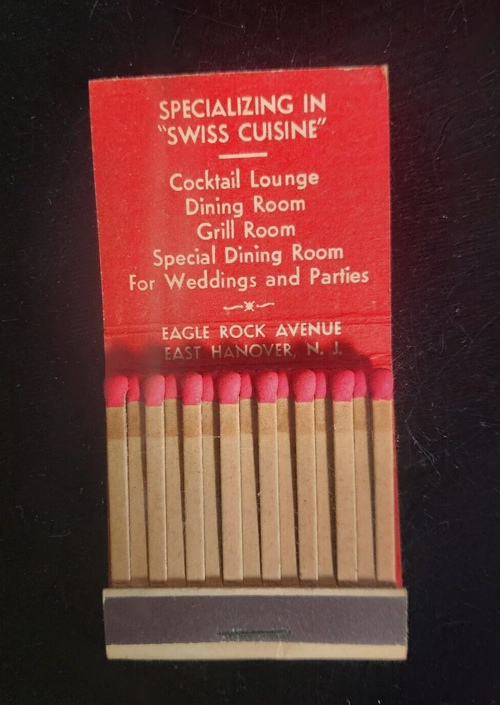 St. Moritz formerly Ray's Swiss Cuisine. In the Hanover Manor, Eagle Rock Ave. East Hanover New Jersey LION Match Co. Full Matchbook 30 Unstruck. Five digit phone number with alpha pre-fix. WH-ippany 8-0262. Pre 196, I found that the Hanover Manor burned in 1961 along with its establishment at the time, St. Moretz. Great vintage condition rare historical matchbook. Only small signs of age. See pictures for condition details. Matchbooks are all in vintage condition. Pictures are accurate to the condition and level of wear you will receive them in. All orders will be shipped with care to protect your collectable matchbook. If there is significant wear I have mentioned it in description. Otherwise assume that there are small signs of age. As is expected of 50-80 year old paper. We are not phillumenist's so small nomenclature and specifics may have discrepancies. We have acquired a large collection of vintage struck & unstruck. We do our best to investigate and research every item we are selling so we can give the most accurate descriptions as is possible. Please see all our other matchbooks, postcards, and items available. Hi and welcome to my store. I always strive to offer the highest quality vintage, new, used or unique items I can find. Much of my inventory has been previously used. I always try to find the most gently used items I can find but this does mean that minor imperfections may be present. I will always try and put these imperfections in the item description. Please use the pictures as a guide to the item's condition. Be aware that due to camera limitations minor differences in color can occur. If you ever have any problems or issues with an item that you have purchased please do not hesitate to reach out to me so I can correct or address the situation. I always try and respond to or accommodate all questions about items I am selling. I will offer the fastest and safest shipping with care that I am able to. As a small reminder. I am a small one person business. I do my best to research all prices on the items I am selling. I always take condition into consideration when pricing. In most cases I welcome offers on merchandise. Please be considerate when sending offers. I have to compete with much larger organizations to stay in business. Thank you for your business and support. Have a great day I look forward to filling your order. Sincerely Coopadoopa, - If there is something you are unclear on ask before you bid/buy. - I guarantee that this item will arrive as described/seen in this listing. (Always use the pictures provided for condition). - All Items must be returned with all original contents and components. - In case of damaged parcel: * Please contact me. (Do not accept the package whenever possible if there is obvious damage to the parcel with visible inspection). * I will follow up and file a "damage claim" with the carrier (or address the matter on a case by case situation) . * All shipping, packaging materials boxes/bags/wrappers/padding must be saved. - In case of a missing package please contact me after checking the tracking and verifying that it has stopped updating. I will contact eBay and make them aware of the situation. - I keep all of my inventory in a clean dry space free of as many environmental contaminants as is possible. As many of my items are pre-owned or purchased on closeouts I am unable in most cases to tell you where the item was stored or its history prior to my obtaining it. -Thank you for reading and understanding this list. I treat each and every purchase on an individual basis. I am always open to reasonable compromise when a situation requires.