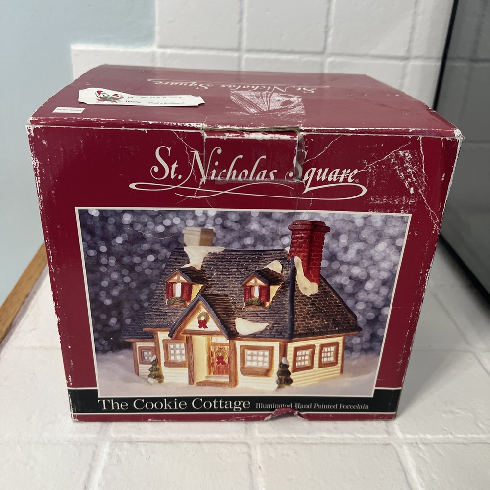 Add a charming touch to your holiday decor with this St. Nicholas Square The Cookie Cottage. This illuminated Christmas Village piece features a delightful asymmetrical design with a 3D effect that creates a magical atmosphere in any room. The multicolor porcelain cottage measures 7.5 inches in length, 7 inches in height, and 5 inches in width, making it the perfect addition to your existing collection or a stand-alone display. The Cookie Cottage comes in its original box, making it a great gift for teens and adults who love American-style Christmas decor. Whether you're looking to create a festive village scene or simply add a cozy cottage to your holiday decor, this St. Nicholas Square piece is sure to delight.