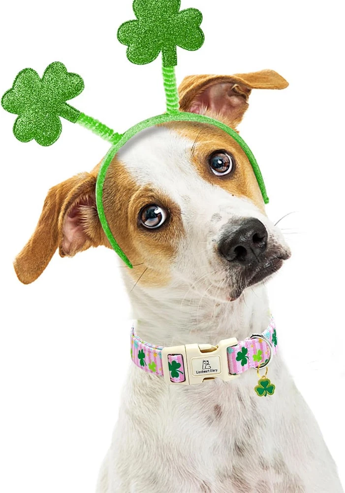 St. Patrick'S Dog Collar-Lucky Clover Shamrock Pink Spring Trefoil Dog Collar fo