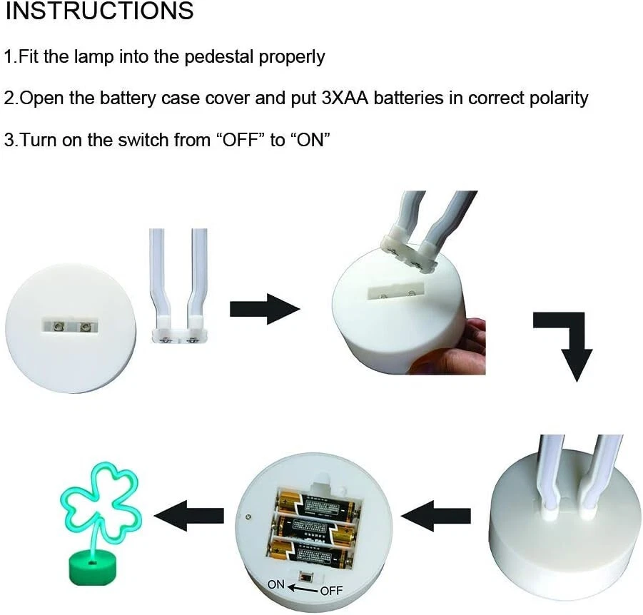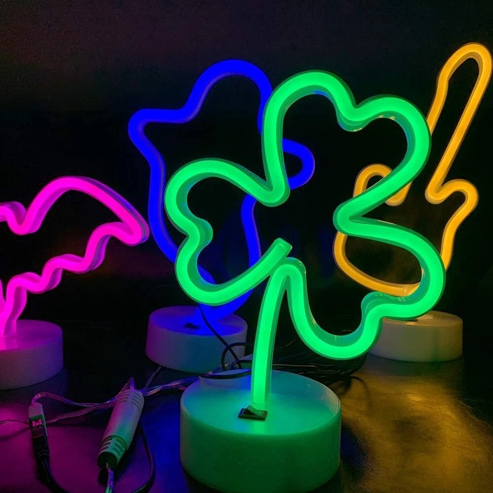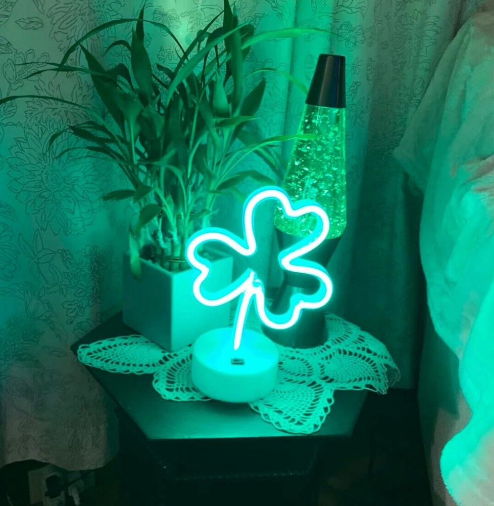 Shamrock LED Neon Sign - Green Lucky Clover Light Decoration for St. Patrick's Day, Parties, & Bedrooms Add a touch of luck and charm to your space with this ENUOLI Shamrock LED Neon Sign. Featuring a vibrant green lucky clover design, this neon light is perfect for celebrating St. Patrick's Day or bringing a fun, festive vibe to any occasion. Here’s why you’ll love it: Symbolic Fortune: The shamrock shape is widely recognized as a symbol of luck, and this neon light is designed to attract attention and create a warm, welcoming atmosphere. Its standing base allows it to be placed anywhere—whether on a table, shelf, or in the corner of your room. Perfect for Any Occasion: Ideal for holiday decorations, this neon light will bring a playful touch to your St. Patrick's Day celebration. It’s also great for parties, weddings, or just brightening up your bedroom. The glowing green clover will surely catch the eye of friends, family, and guests! Two Convenient Power Options: This neon sign offers versatility with two power modes. You can plug it into a USB port for hassle-free power or use 3 AA batteries (not included) for cordless operation, making it easy to place anywhere without worrying about cords. Safe & Energy-Efficient: Made with flexible silicon LED strips and an acrylic back sheet, the sign is designed for durability and safety. It operates on low voltage and is energy-efficient, so you don’t have to worry about overheating or the risk of glass breakage. It’s a safe and eco-friendly option for your home.
