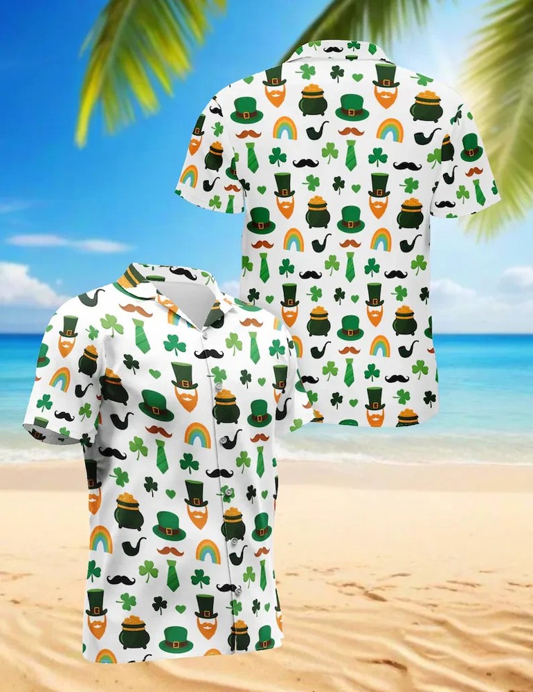 St Patrick's Day Shamrock Hawaiian Shirt Irish Lucky Green Men's Party