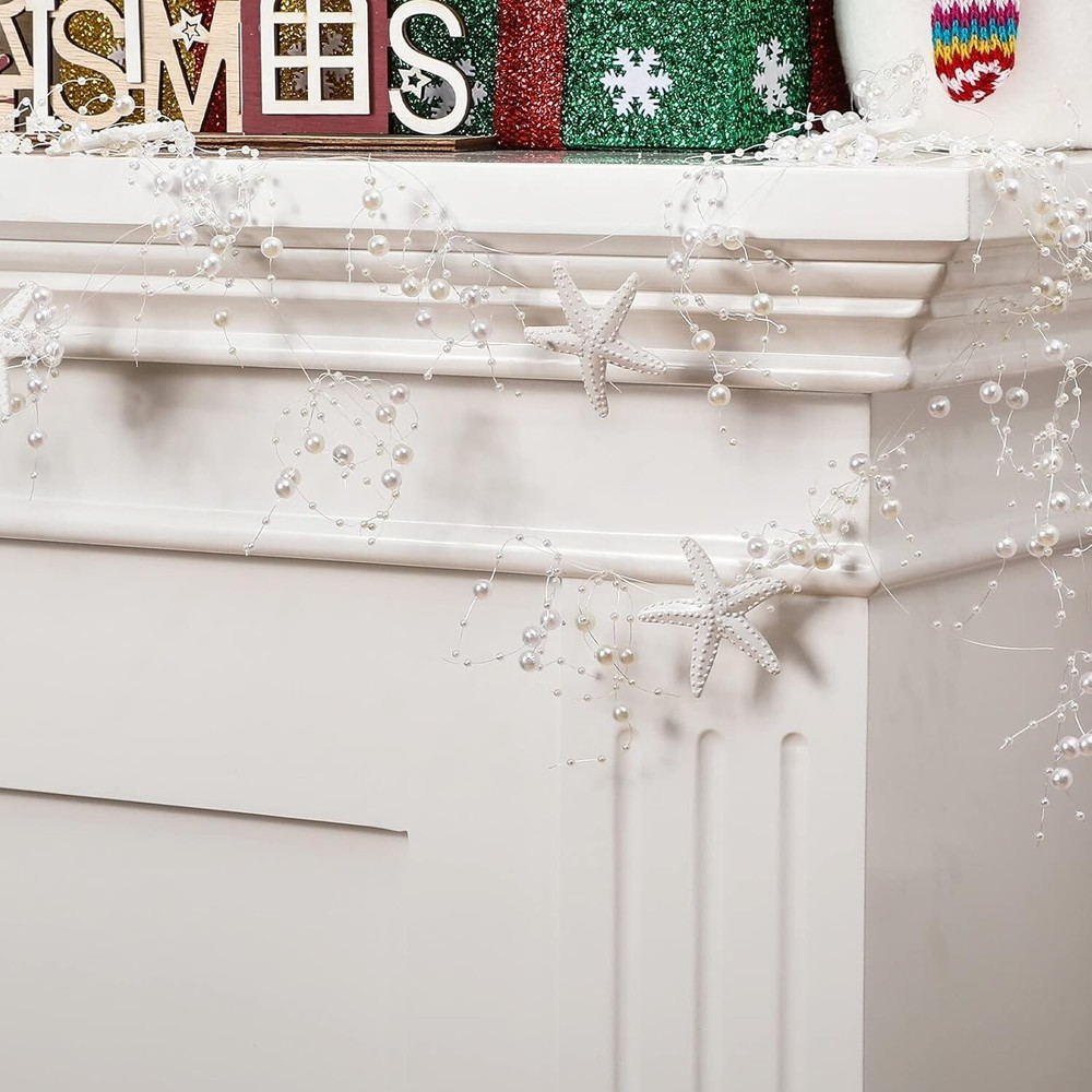 $ 8.2"Beaded White Starfish Garland Christmas Beaded Garland with Starfish Coastal Be