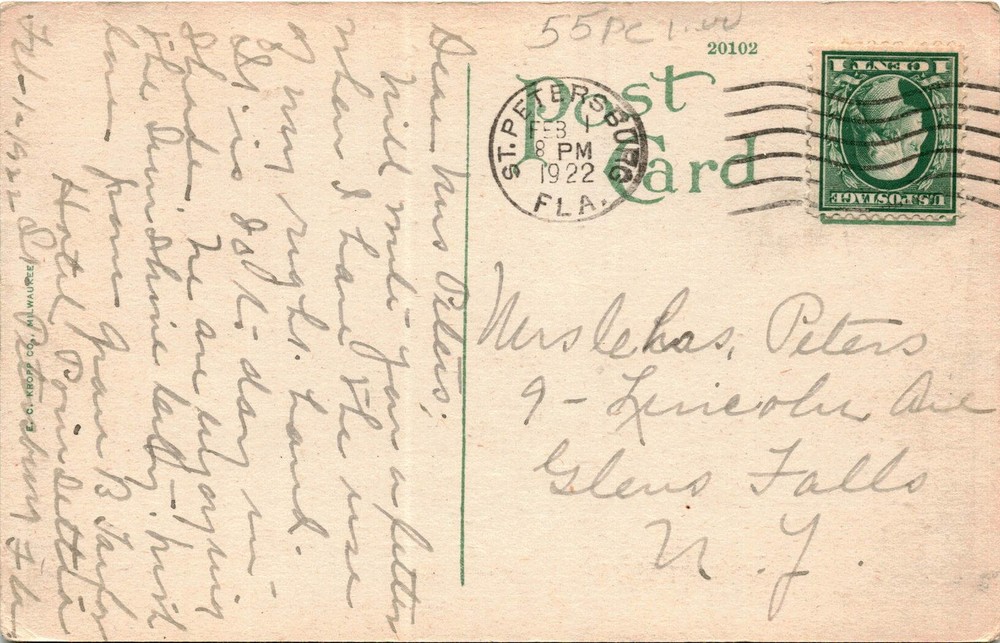 St. Petersburg, Fla, Electric Pier, Glens Falls, Jericol, Muslehas, Postcard