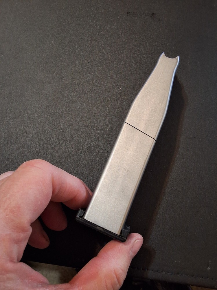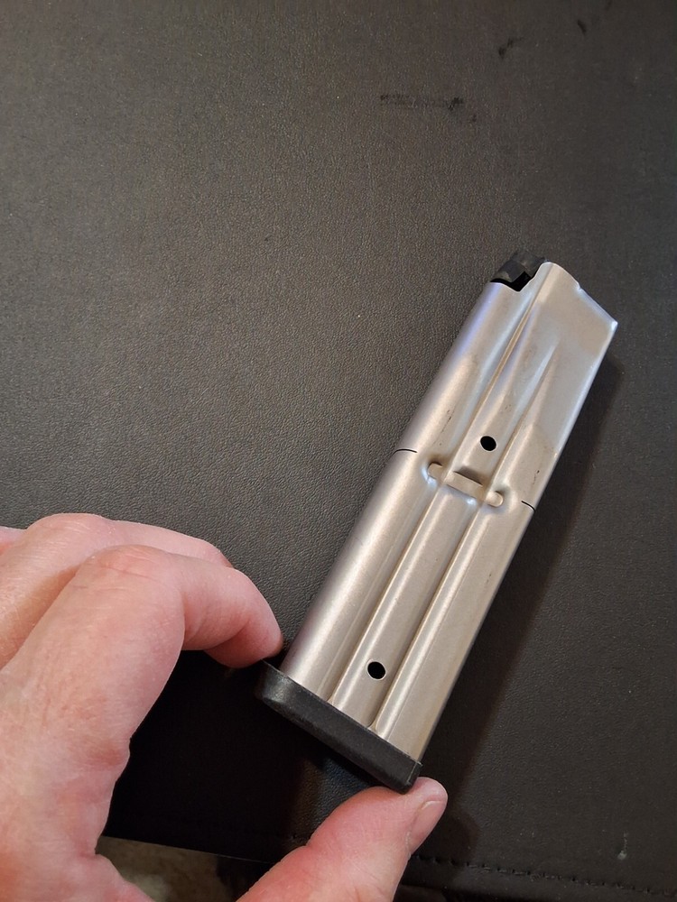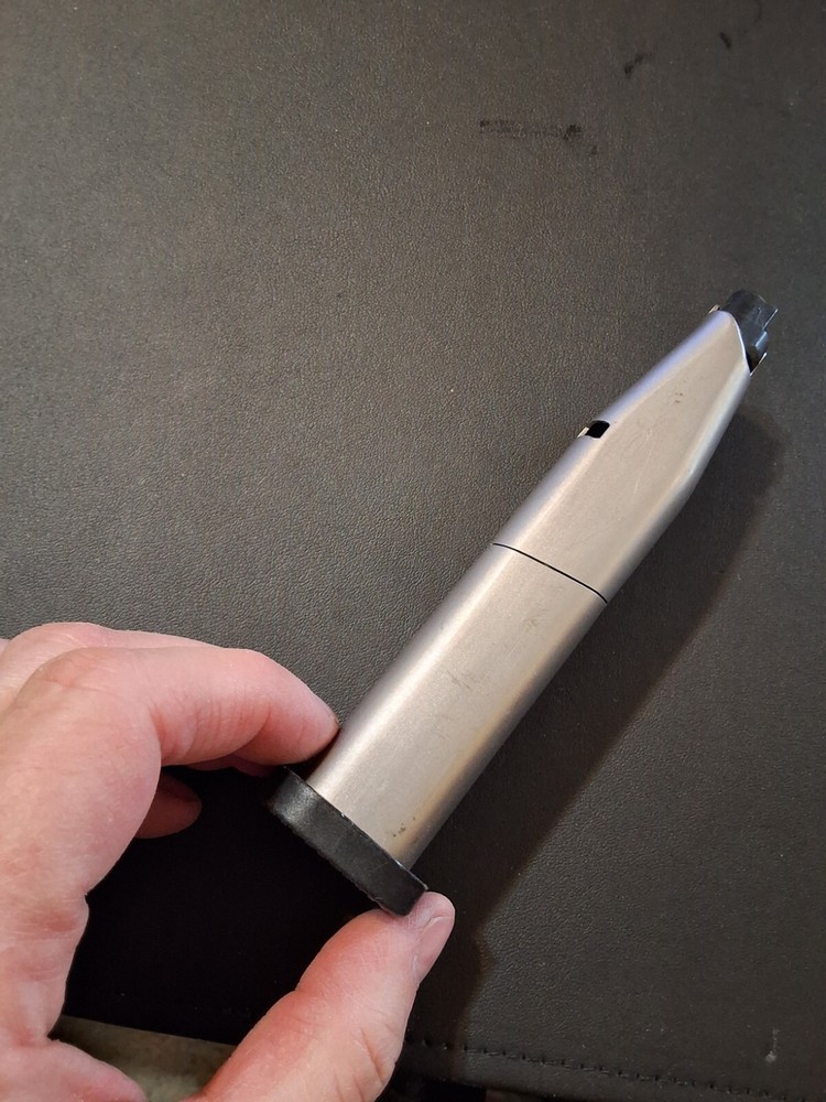 Model: Staccato Material: Aluminum Magazine Capacity with Extender: 10 For Gun Make: STACCATO Type: Firearm Magazine Extender Color: Silver For Gun Type: Handgun Gauge/Caliber: .45 ACP Brand: STACCATO Number of Rounds: 10 Seller Notes: “EXCELLENT CONDITION”