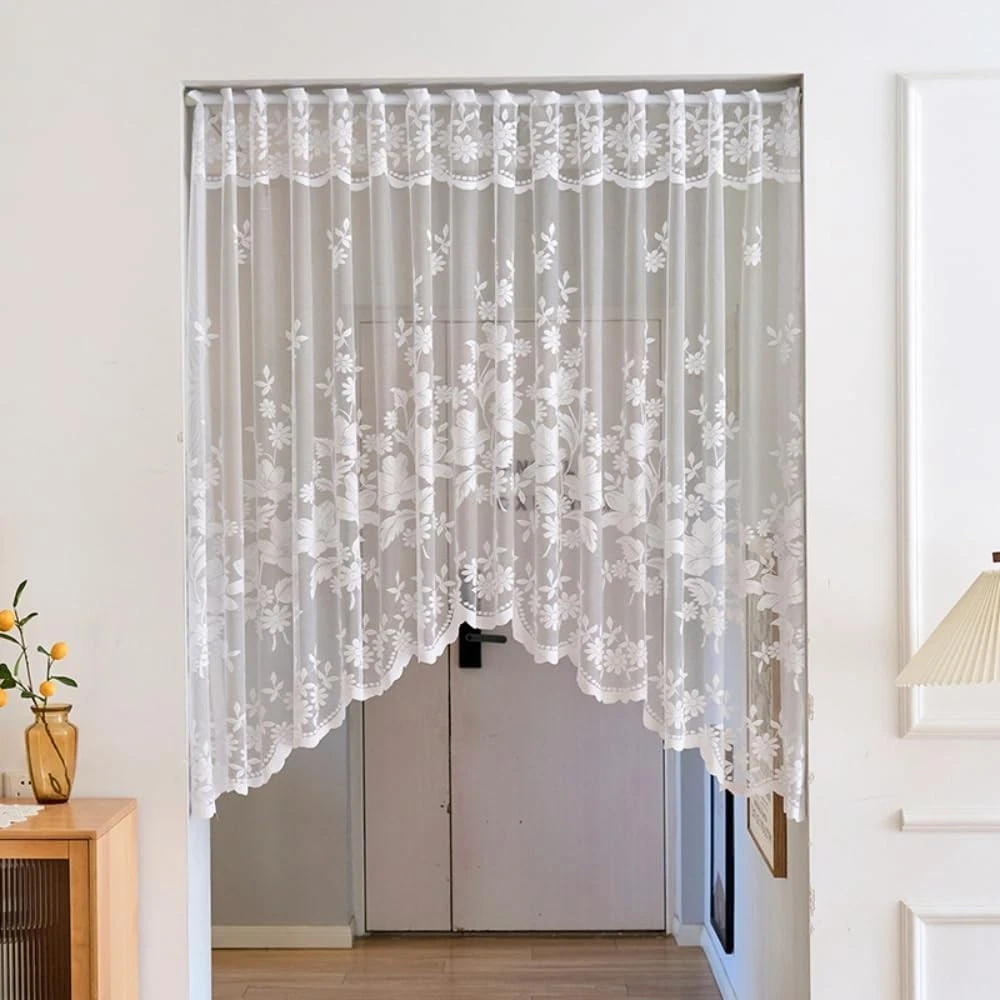 Curtain Stacey Ruffled Swag 63 in x 39 in White Sheer Curtain Doorway Window New Size:63"W x 39"L (Pack of 1) Color: White Material: Polyester Product Dimensions: 39"L x 63"W Opacity Light-filtering PACK: Include 1 panel White Lace Kitchen Curtain Valance, Size Measure 63" wide by 39" wide, curtain rod is not included. FINISH TOP: Rod Pocket Top, suitable for all common telescopic curtain rods. DESIGN: Princess Style Floral Embroidery Sheer Lace Swag Curtain, gives you a relax feeling and elegant look, a best home decor for your room, suitable for Bedroom, Living Room, Dining Room and Studying room. EASY CARE: Machine washable . Low Iron, Dry Naturally. Please note this white lace kitchen curtain is not pure white as A4 paper. NOTE: It is better for your curtain's width to be 1.5-2 times of your window's width, please choose the right size needed. Return Policy: We offer a 30 day return policy from the receiving date. Please contact us for a Free Return Label. Please use our return label so it will go back to our supplier and we can do a refund or replacement afterwards. Feedback: Your satisfaction is very important to us! If you have any problem with your order, please contact us and we will do our very best to make you satisfied. As long as you are happy with your purchase, please leave a positive feedback for us. We will always leave you a positive feedback in return. If you have any problem with your purchase, please do not leave a negative feedback. Please Contact us ... and your issue will be solved quickly and positively We are a small family-owned business trying to make a living, not a huge company that does not care ... We will ALWAYS do our best for you!