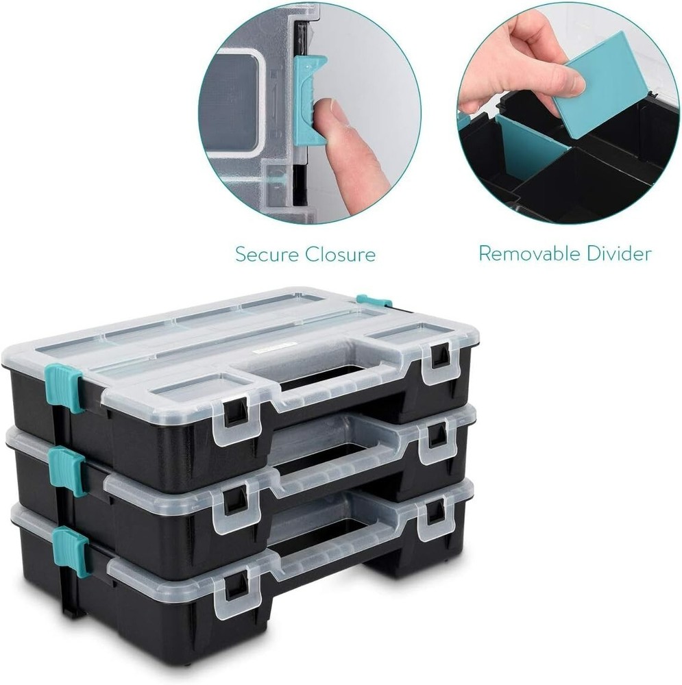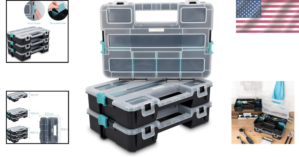 Premium Stackable Organizer Case - 3 Black Plastic Boxes for Tools & Accessories ‹ › ‹ › ‹ › ‹ › ‹ › ‹ › ‹ › ‹ › ‹ › ‹ › Premium Stackable Organizer Case -3 Black Plastic Boxes for Tools & Accessories Features: Master Organizer: Simplify your DIY experience by keeping all your accessories and tools handy and tidy. Tailor Made: Adjustable compartments allow you to customize box sizes for larger accessories like screwdrivers and wrenches. Secure Closure: 4 hooks on the front and sides ensure a tight lid, keeping your tools securely in place. Solid & Durable: Crafted from sturdy plastic with a built-in handle for added convenience during transport. Dimensions: Single box: 12.4" x 8.9" x 2.6" (31.5cm x 22.5cm x 6.6cm); Two stacked boxes: 12.4" x 8.9" x 5.3" (31.5cm x 22.5cm x 13.4cm); Three stacked boxes: 12.4" x 8.9" x 7.8" (31.5cm x 22.5cm x 19.8cm). Benefits: Ideal for both DIY beginners and professionals, providing essential organization for your tools. Customizable compartments accommodate a variety of items, ensuring no space is wasted. Robust design ensures longevity, making it a worthwhile investment for any workshop. Lightweight yet durable, allowing for easy transport and accessibility. Why choose our Premium Stackable Organizer Case? Embrace the art of organization with our Premium Stackable Organizer Case. Designed with the DIY enthusiast in mind, it offers both versatility and durability. Each box can be adjusted to fit everything from tiny screws to hefty tools, so you can have it all neatly stored and within reach. The secure closure system ensures that your items remain safe and sound, while the sturdy build guarantees this case lasts through countless projects. Transform your workspace today—choose our Premium Stackable Organizer Case and elevate your crafting experience! Shipping Free & Fast Shipping - We offer free shipping to most of the USA with a normal delivery time of 3-7 days. However, due to the current situation, additional delivery time (up to 3 weeks) may be required for some items. Alternative Carriers - We may use alternative carriers (e.g. USPS, FedEx, UPS, etc.) to ensure your package arrives safely and on time. Due to the use of multiple carriers, we are unable to provide a tracking number automatically. Handling Time - Orders are processed and shipped within 1-2 business days of receiving cleared payment. Shipping Restrictions - Shipping to Alaska, Hawaii, Puerto Rico, Guam, and other US territories may incur shipping charges or delivery restrictions. Please contact us before ordering, or your order can be refunded/cancelled. State Restrictions - There may be restrictions based on your state of purchase. For example, certain items may not be shipped to California due to state regulations. Contact for Tracking Updates - If you require tracking updates or have any concerns about the delivery of your order, please feel free to contact us, and we will be happy to assist you. Return 30-Day Hassle-Free Returns - We want you to be completely satisfied with your purchase. If you are not, you can return the item within 30 days of receiving it for a full refund or exchange. Easy Return Process - To start a return, simply contact us and we will provide you with a prepaid return shipping label and detailed instructions. Restocking Fee - There are no restocking fees for returns. However, the buyer is responsible for return shipping costs if the return is not due to a seller's error. Refund Processing Time - Refunds will be processed within 5 business days of receiving the returned item in its original condition. Payment We accept all major credit cards, PayPal, and Apple Pay for your convenience. Your payment information is secure and encrypted to ensure a safe and seamless transaction. Please complete your payment within 3 days of purchase to avoid any delays in shipping. Feedback Your feedback is extremely important to us. We strive to provide the best products and customer service possible. If you are satisfied with your purchase, please take a moment to leave us a positive review. If you have any concerns or issues with your order, please contact us before leaving negative feedback. We are committed to resolving any problems and ensuring your satisfaction. Contact Us If you have any questions or concerns, please feel free to reach out to our customer support team. You can contact us through the eBay messaging system. We are available Monday to Friday, 9:00 am to 5:00 pm EST, and we will do our best to respond to your inquiry within 24 hours. Buy it now and enjoy a pleasant shopping experience! UPC: Not Set Unit Quantity: 3 Material: Plastic Features: Stackable,Adjustable Divider,Removable Divider,Secure Closure,Durable,Transportable Mounting: Free Standing Theme: Not Set Brand: Unbranded Item Height: Storage Box with Dividers Item Length: Storage Box with Dividers Item Width: Storage Box with Dividers Type: Container Size: Large Color: Black Capacity: 81 - 120 Quarts Item Weight: Less Than 2 lb Number of Items in Set: Three-Piece Item Depth: Less Than 5 in MPN: Not Set Model: Not Set Number in Pack: 3 Number of Compartments: 8 Shape: Rectangle Pattern: Not Set Style: Contemporary Country/Region of Manufacture: Not Set Original/Reproduction: Not Set Finish: Matte Unit Type: Unit Assembly Required: Not Set Personalize: Not Set