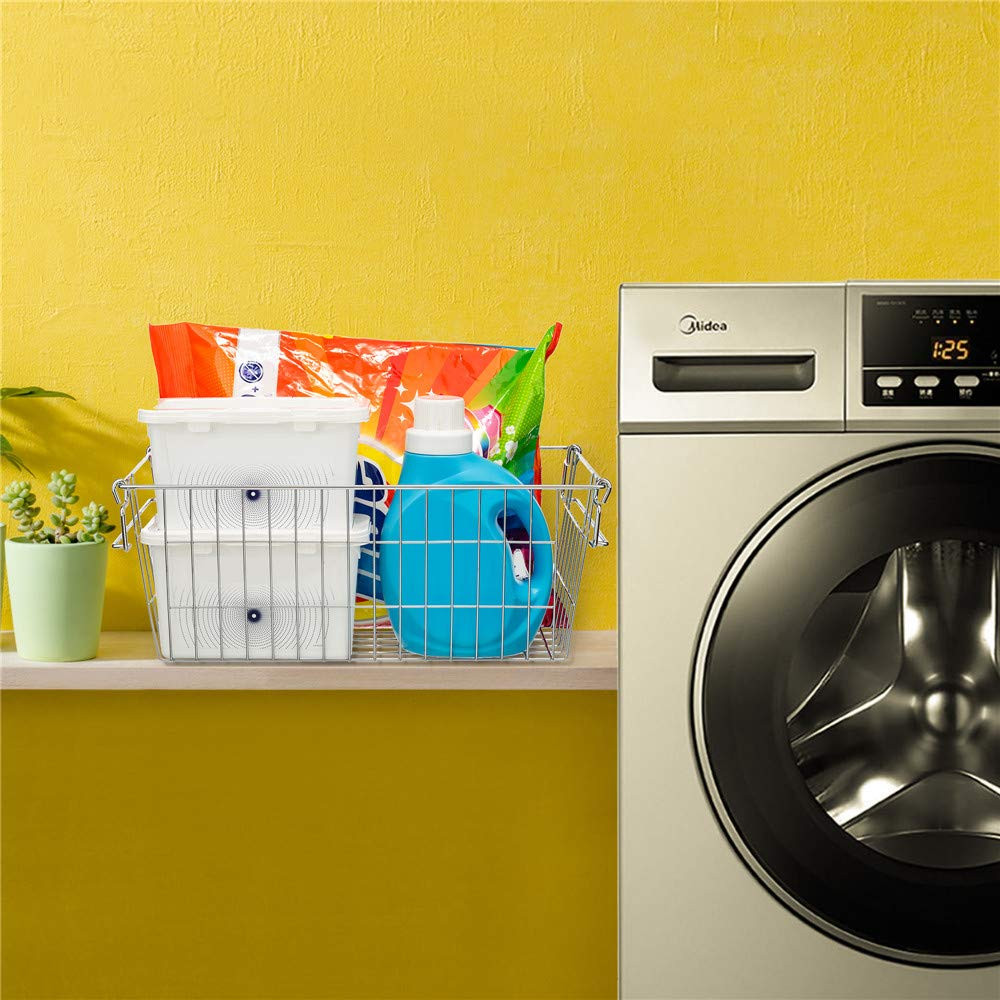 You will receive 3 stackable wire metal baskets.Approximate Dimensions:15.7in(L) x 9.5in(W) x 6.3in(H). Use farmhouse-style wire baskets to keep any clutter out of your kitchen, pantry, bathroom, and other areas; the large stackable basket space provides more space to organize and all your essentials. Stackable metal storage bins. Use the tableware basket alone or stacked metal baskets to facilitate vertical storage - it is great to save space on the table or shelf. The metal wire basket is durable.Use reliable materials with coating to complete the high-quality storage basket of kitchen and bathroom. Easy-grip side handles make it convenient to pull-off the shelf, out of cabinets and drawers, or wherever you them; The built-in handles make these ideal for upper shelves, you can use the handles to pull them down; it is easy to grab and transport to kitchen countertops or tables; Use multiple bins together to create a customer organization system.Organize items and easy to find them. The perfect solution for organizing a multitude of items - such as video games, bath soaps, shampoos, conditioners, linens, towels, laundry needs, craft supplies and more; Use in bathroom, bedroom, closet, laundry room, utility room, garage, hobby and craft room, home office, mudroom and entryways; Perfect for homes, apartments, condos, dorm rooms, RVs and campers. Versatile and Practical: The wire basket is highly versatile and practical, suitable for use anywhere in the home, including pantry storage, kitchen cabinets, freezers, clothing wardrobes, bedrooms, bathrooms, and any table or shelf storage. The basket is the perfect solution for organizing items and keeping clutter under control.