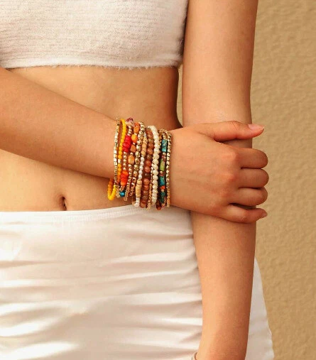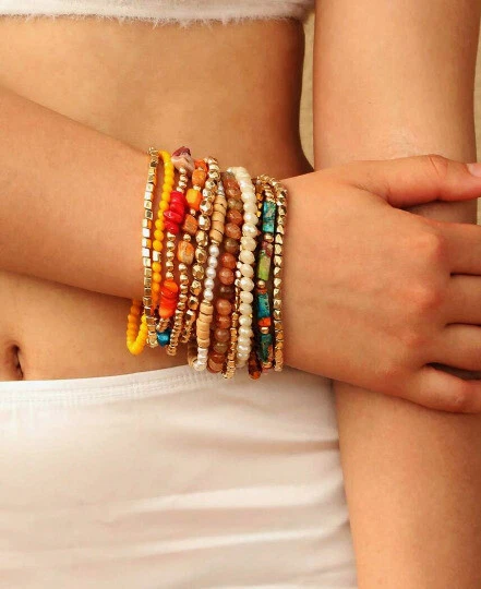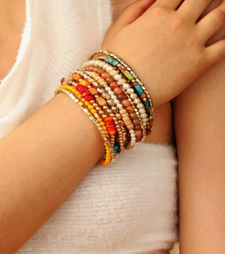 Stackable Gold Multi Small Womens Bracelets Stretch Bohemian Beads Color Bead