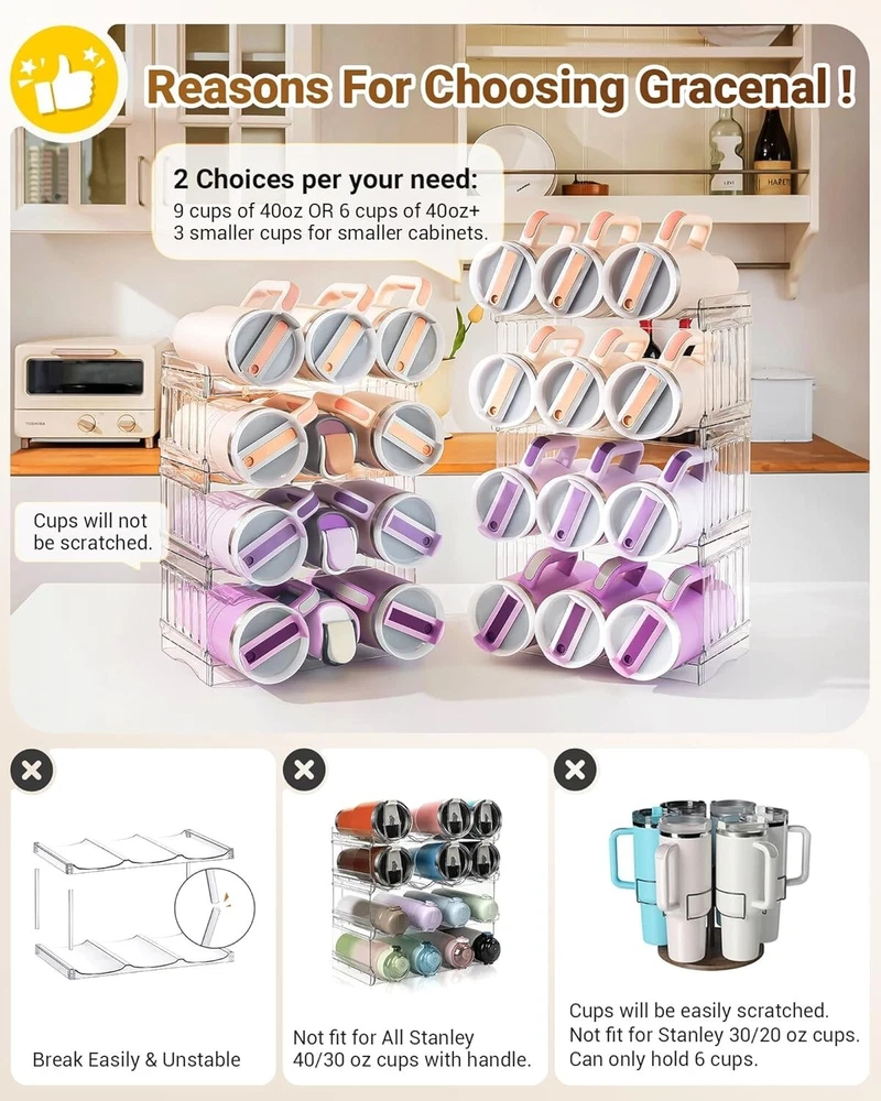 Stackable Pantry Organizers for Stanley Cup Accessories and Kitchen Storage