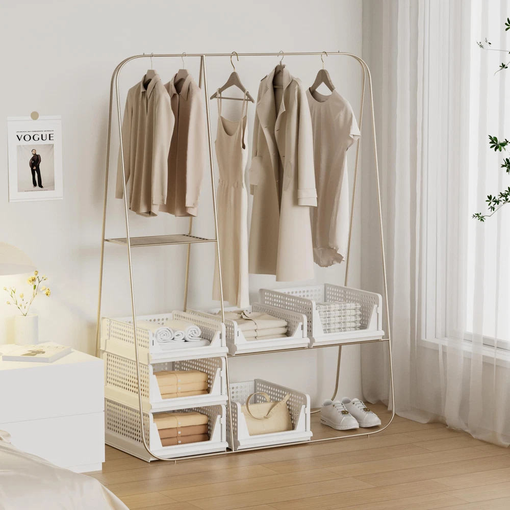 No Waste of Every Inch: 4 pack of stackable plastic storage drawer bins maximize space-saving and neatly organize clothing. Ideal for sorting out the right outfits from different types of clothes, Sweater whether they are layered or not. Versatile for Anywhere: The closet organizers storage shelves are perfect for storing different kinds of items, such as clothes, toys, snacks, files, etc. Suitable for bathroom, kitchen, living room, office. Slide Rail Design: These storage shelves with drawers are convenient to use, and you can easily fetch what you need even from the most inner part, thanks to the embedded slide rails at the bottom.【Pls note: If you need to pull out, please support it against the wall, hold the drawer in place with one hand and only pull the other unit out with the other hand.】 Light yet Sturdy: Made of premium sturdy PP plastic, always sturdy and keeping a good shape. These stackable storage bins are lightweight and fit anywhere. Small size: 16.6”L x 13.1”W x5.5”H. Large size:16.6”L x 13.1”W x7.3”H. What You Get: Pack of 4 drawer storage organizer with foldable and slide rail design, sturdy and space saving, and more ways to use them. Any problems, please feel free to us. We will surely offer you a satisfactory solution.