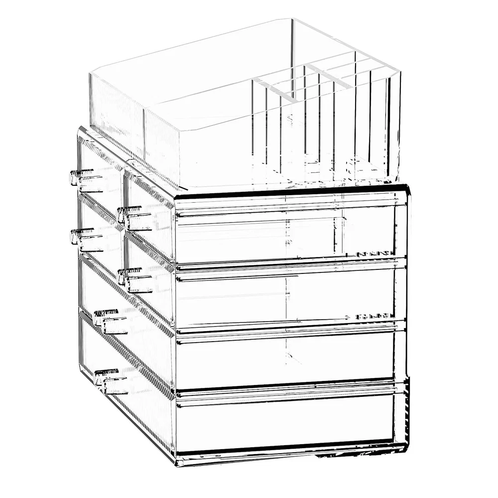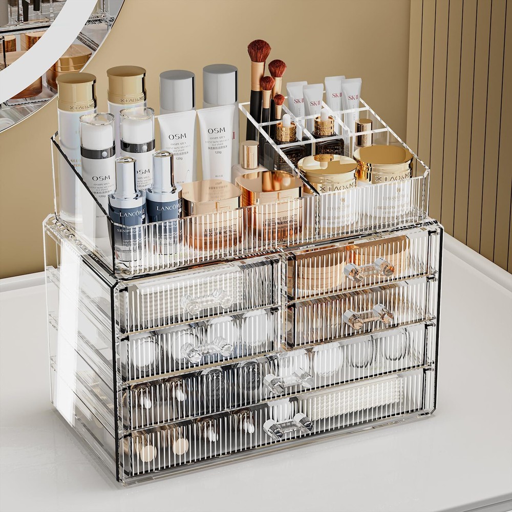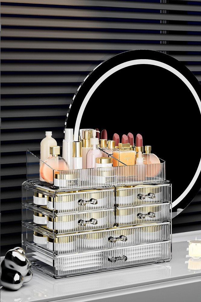 The makeup organizer is the perfect bathroom and vanity organizer for all your cosmetics and jewelry needs. Its clear design allows for easy visibility of all your favorite products, while its flexible design ensures you can customize it to your specific needs. The makeup organizer for vanity is also stackable, allowing you to easily add additional organizers as needed to create a customized storage solution. It is also perfect for use in the office, bedroom, or anywhere else you need to keep your items organized and easily accessible. With ample storage space, this make up organizers and storage is perfect for storing all your favorite makeup products, jewelry, and other accessories. The bathroom organizer features several compartments and drawers that are perfect for storing eyeshadows, lipsticks, brushes, and other makeup products. The jewelry holder organizer and storage capabilities of this product are unparalleled, with a variety of compartments and drawers to keep everything perfectly organized. Whether you’re just starting out with makeup or have a collection of products, this organizer is perfect for keeping everything in one easy-to-find place. Whether you're a makeup enthusiast or just looking for a way to keep your accessories organized, the Makeup Organizer is the perfect choice. So why wait? Order yours today and start enjoying a clutter-free and organized space!